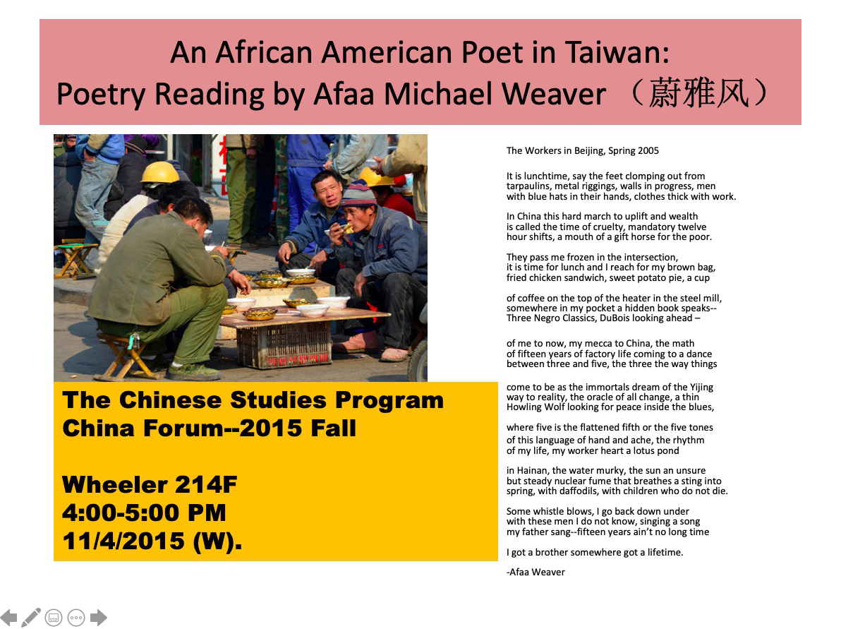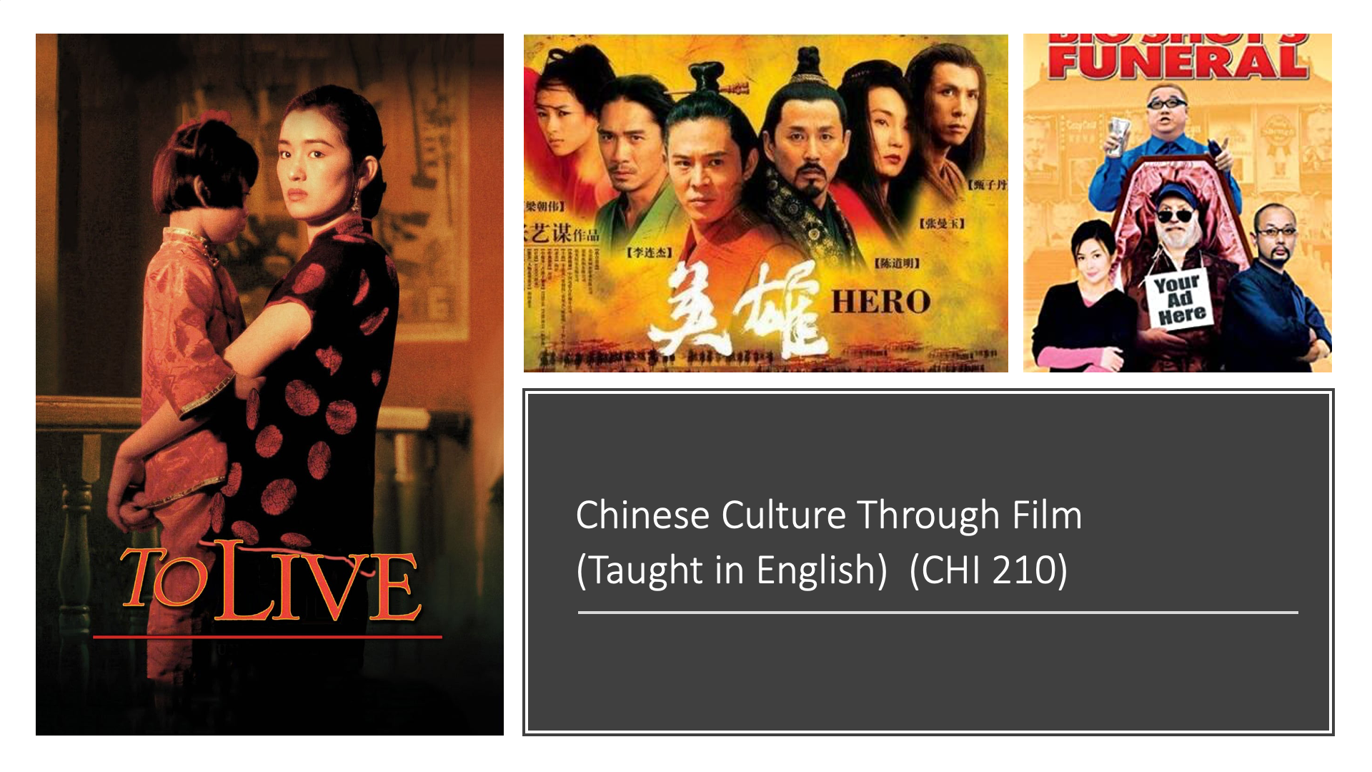 The Chinese Studies Program offers the following content courses: Chinese Culture Through Film (Chinese 210), and Modern Chinese Literature (Chinese 331). Each semester the program hosts the “China Forum” lecture series, featuring experts in Chinese politics, culture, and economics. In addition, the program sponsors special events such as the Chinese Lunar New Year and Mid-Autumn Festival celebrations, and Chinese Club activities.