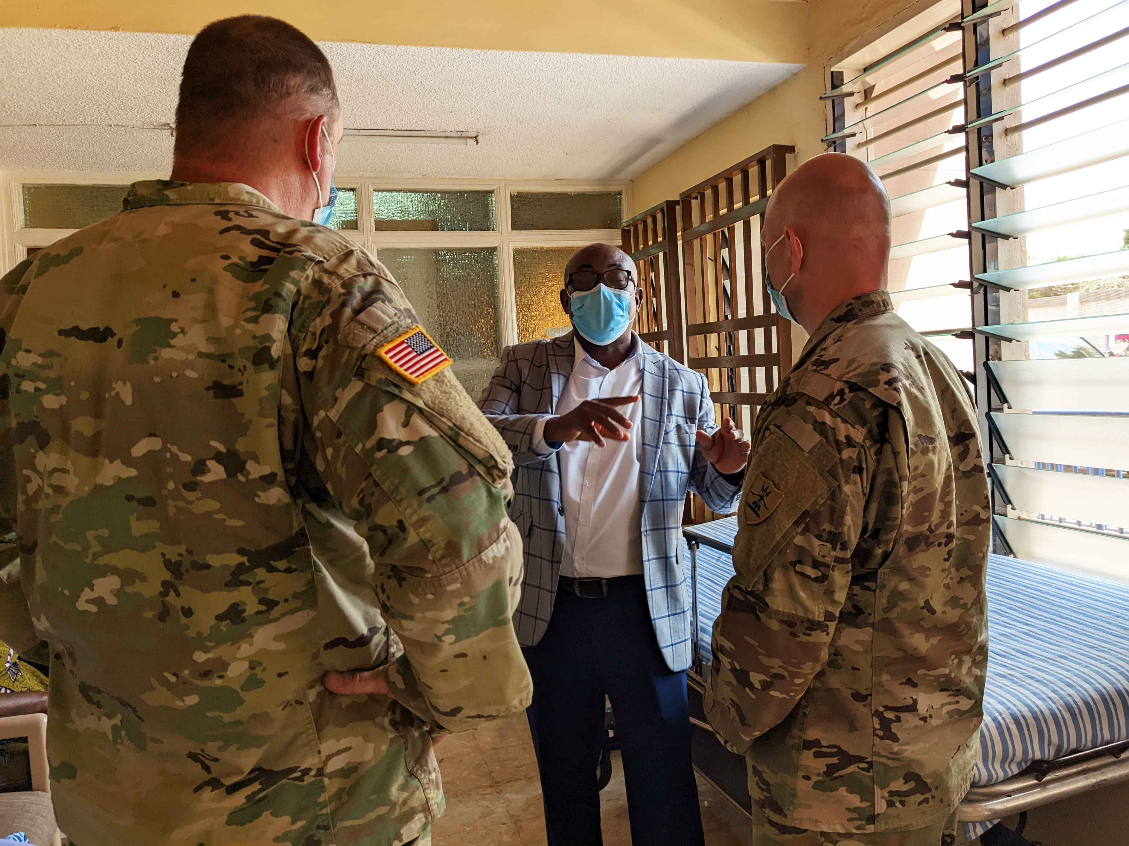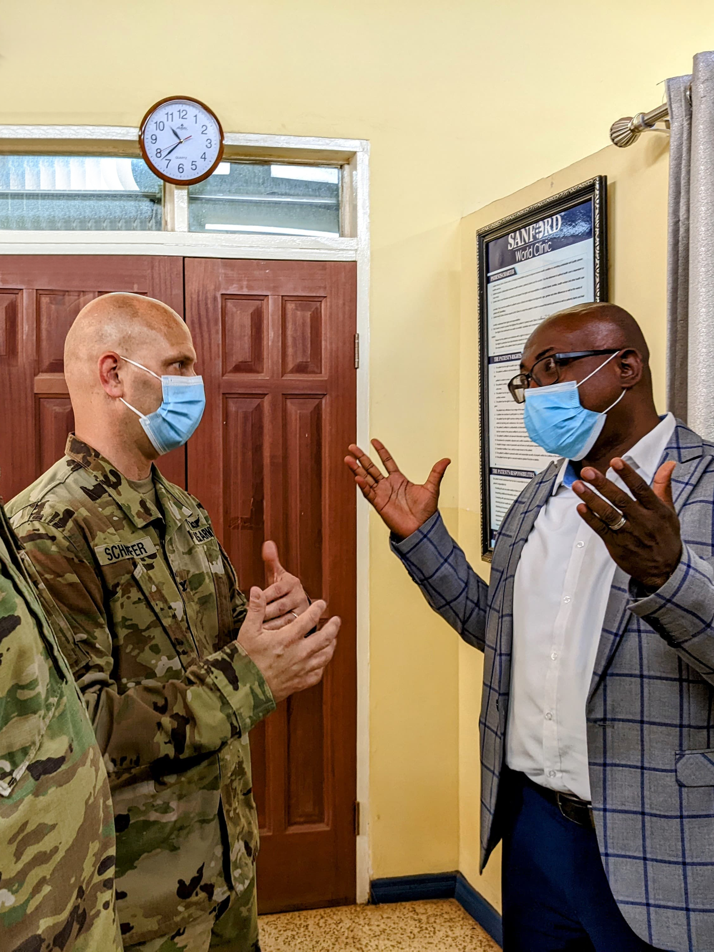 Col. Todd Schaffer and Brian Keller, N.D. Army National Guard state surgeon and deputy state surgeon respectfully, recent met with Dr. Kwaku Darkwa, Sanford International Clinics, for a tour of the Sanford World Health Clinic in Ghana, Adenta region. (National Guard story and photos by Officer Candidate Michaela C.P. Granger, N.D. National Guard Public Affairs)