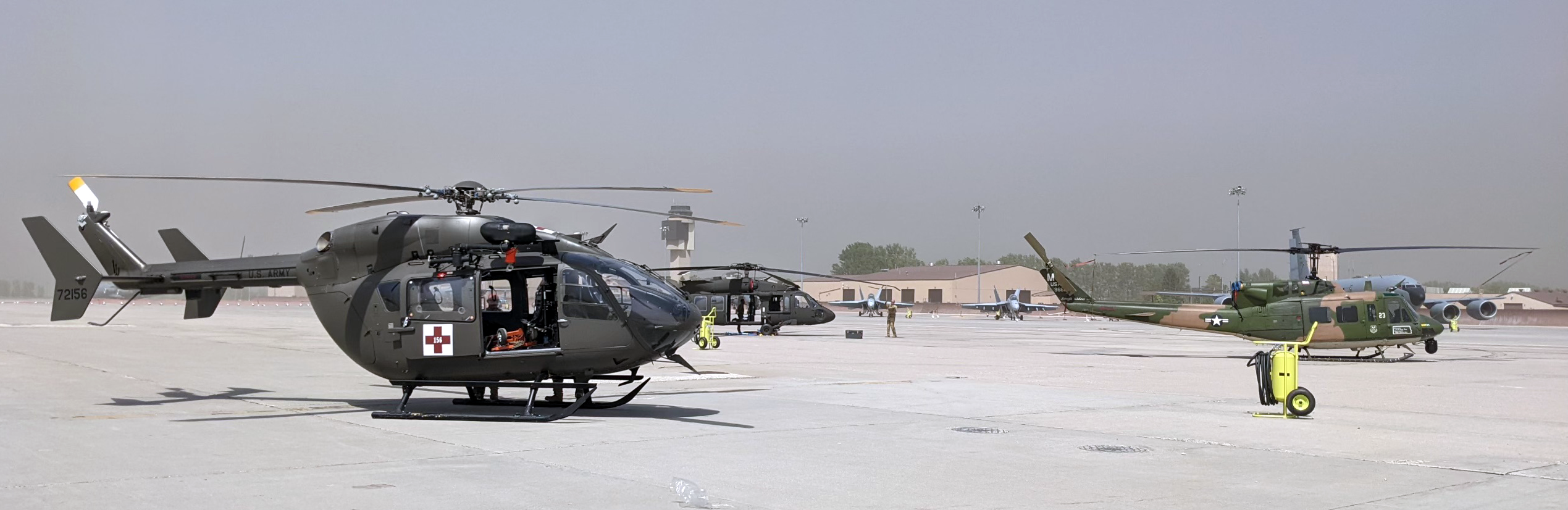 The N.D. Army National Guard displayed two helicopters and an air defense system for airshow visitors to enjoy. The N.D. Air National Guard provided base response support and cooler evaporators to help combat the 100 degree weather that day.