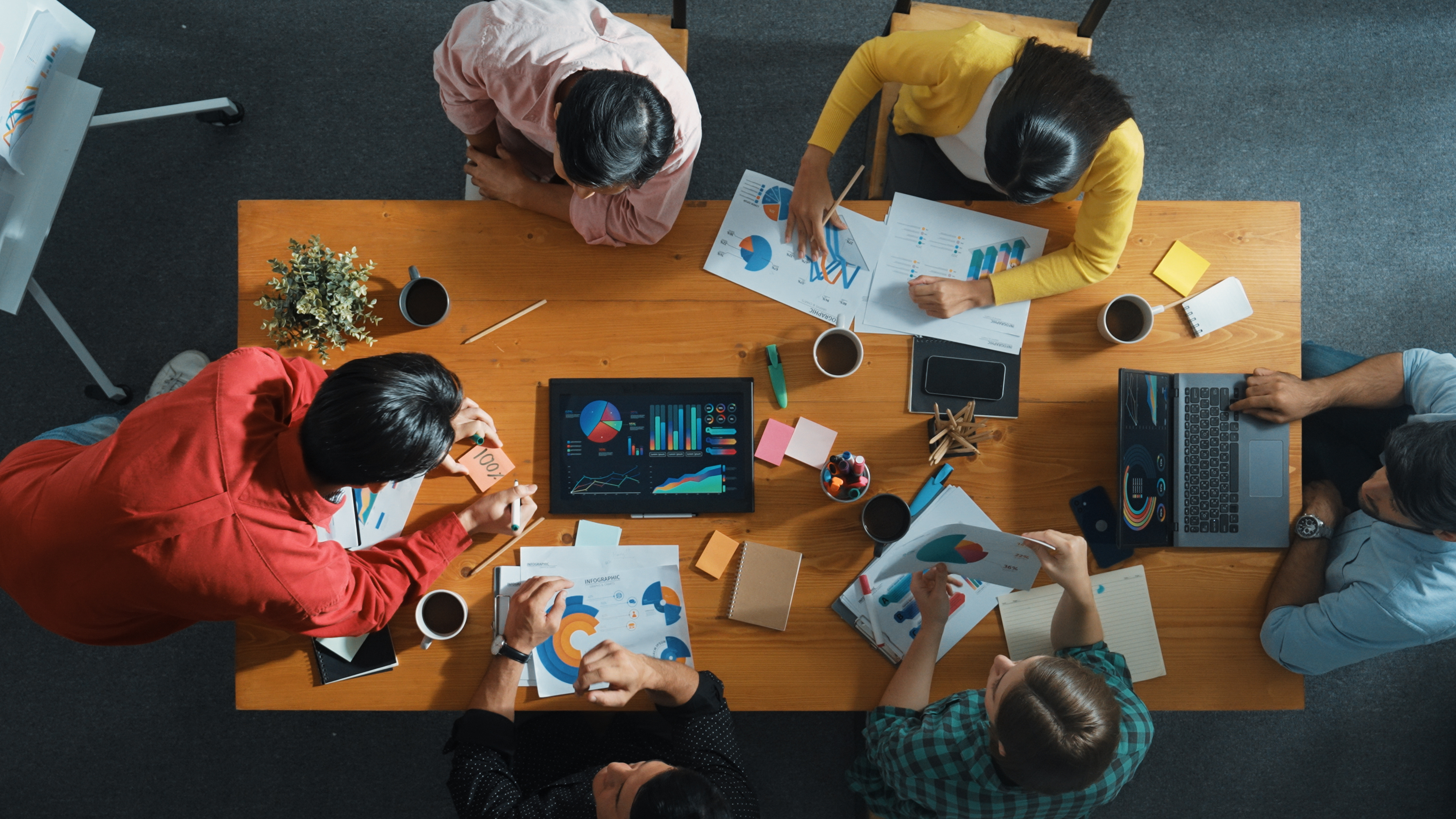 Created with images by InfiniteFlow - "Top down view of investor brainstorming while looking at financial statistic document.,Group of diverse people sharing marketing idea or planning marketing campaign with skilled leader.,Convocation." • shantihesse - "A reflecting skyscraper in Bangkok" • AboutLife - "Group of business people working with technology at a meeting in a conference room" • maksymowicz - "Chicago Downtown at Night" • Natee Meepian - "Close up young business woman sitting at table and taking notes in notebook on table is laptop and many books.,Student learning online.,Blogger." • miss irine - "Woman edits video on laptop at night.,Female hands type on keyboard with video editing software on screen.,Multiple video clips displayed on interface."
