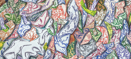 Manche nennen diese Werke laut, das ist insofern richtig als in der Regel der Betrachter überrollt wird von einer Fülle an Sichtbarem, einer Art von visuellem Lärm, bei dem das Ornamentale hilft. Ein bildliches Tosen, durch das der Betrachter erst einmal hindurch muss.