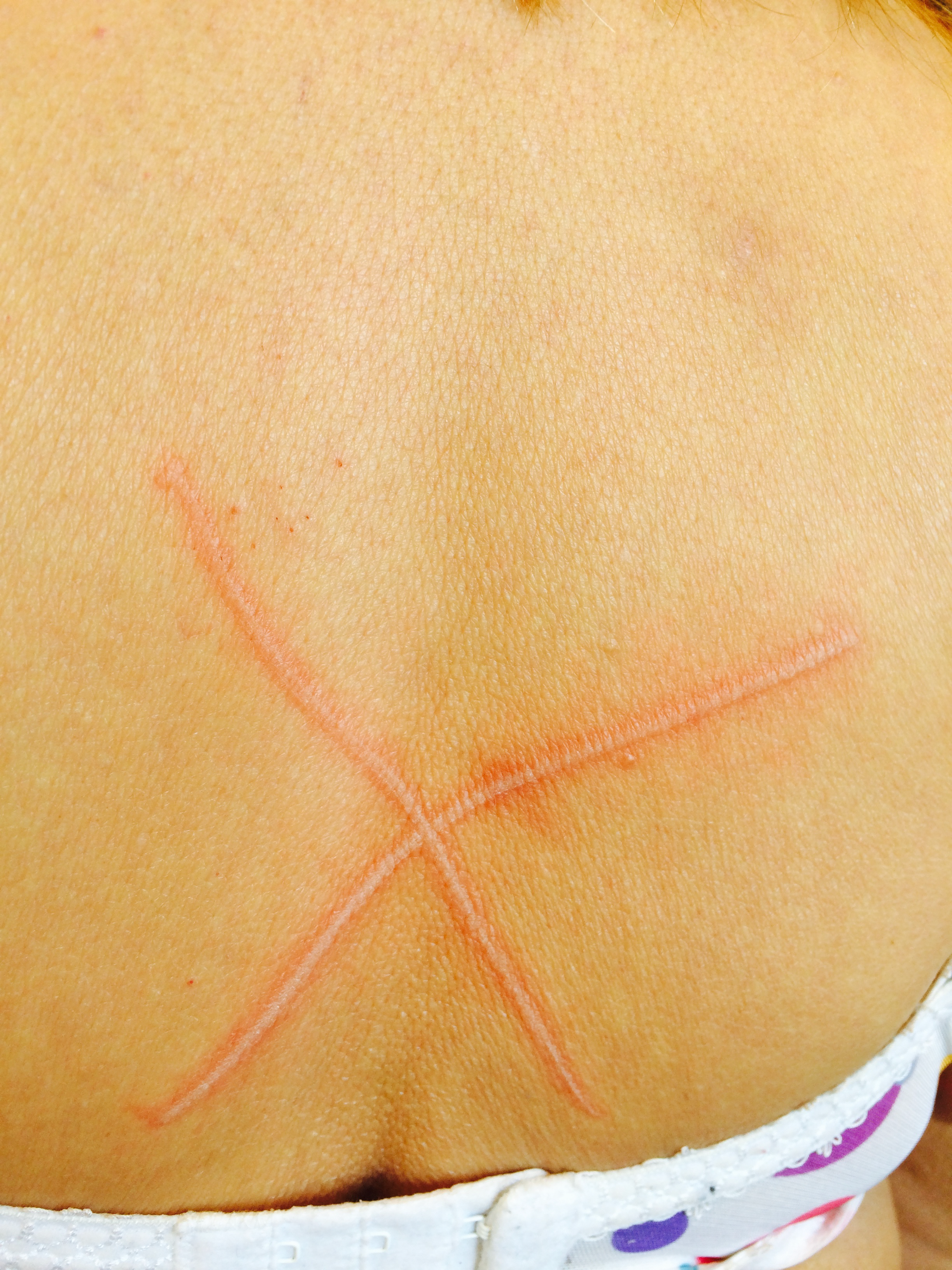 Signs and symptoms of dermatographia include: