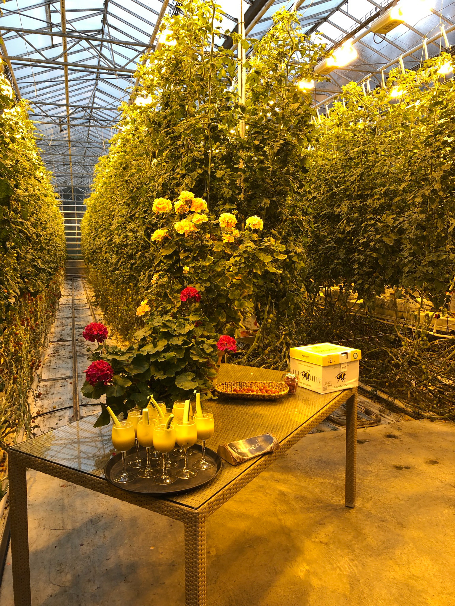 Visite d'une éco-serre et ferme géothermique spécialisée dans la production de tomates. Déjeuner sur place.
