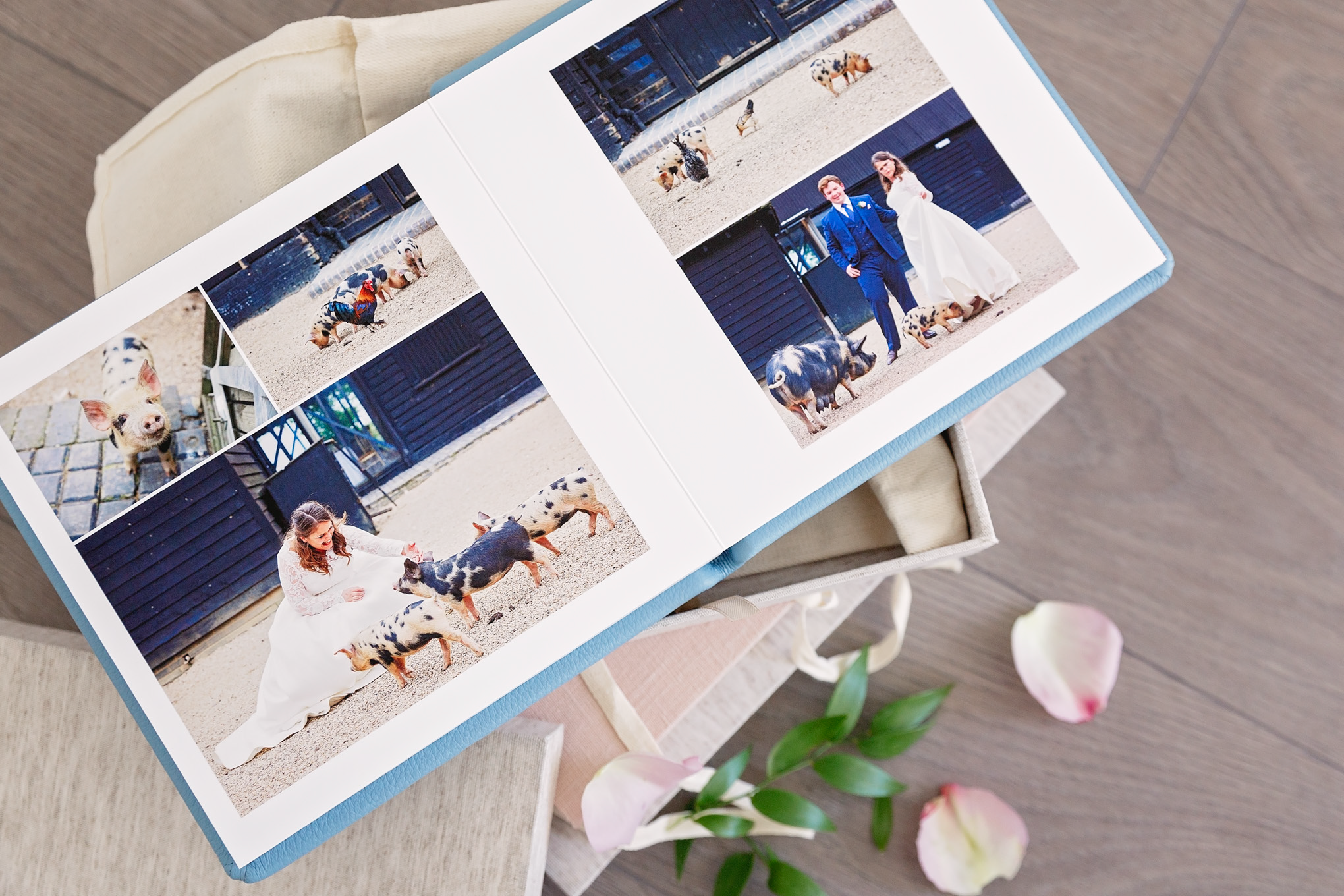 Album prices start at £695 if included in your wedding photography collection. For albums ordered after your wedding, the prices start at £850. All prices include VAT