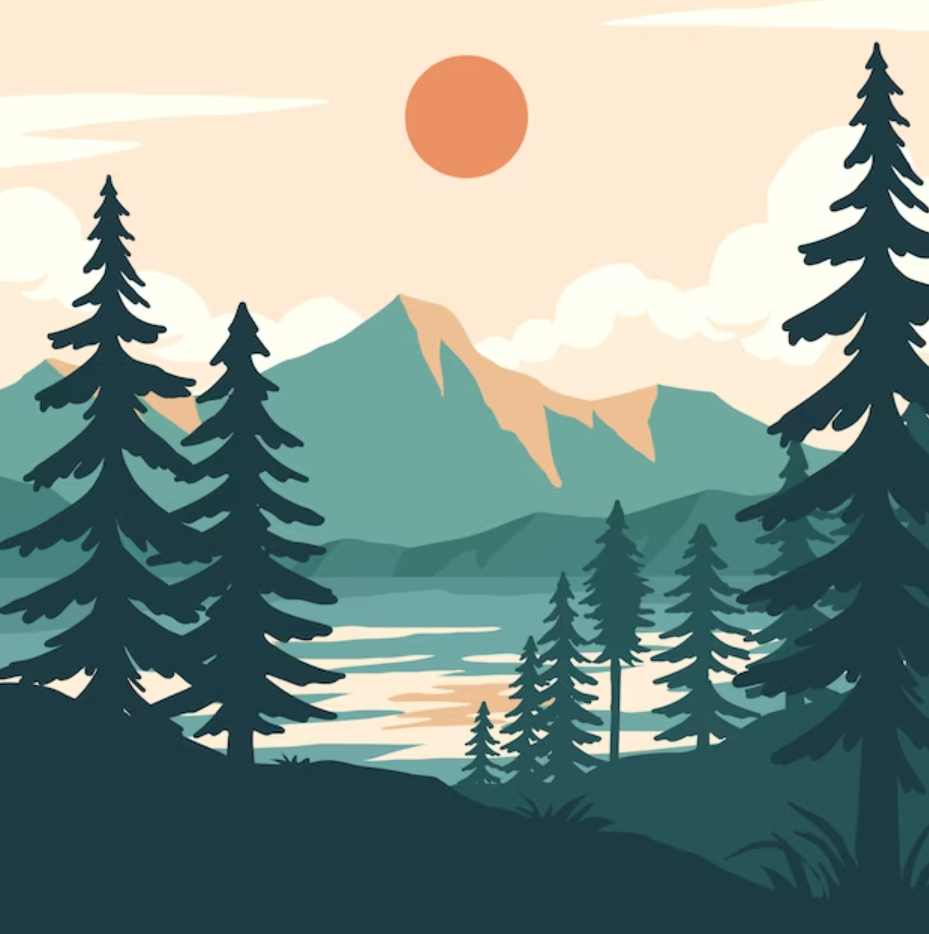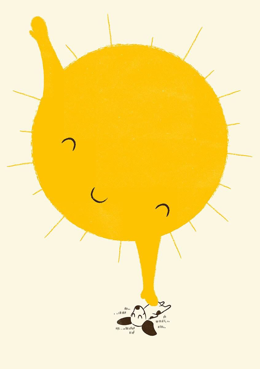 - Select few bright colours, for example a bright blue sky or the yellow of the sun