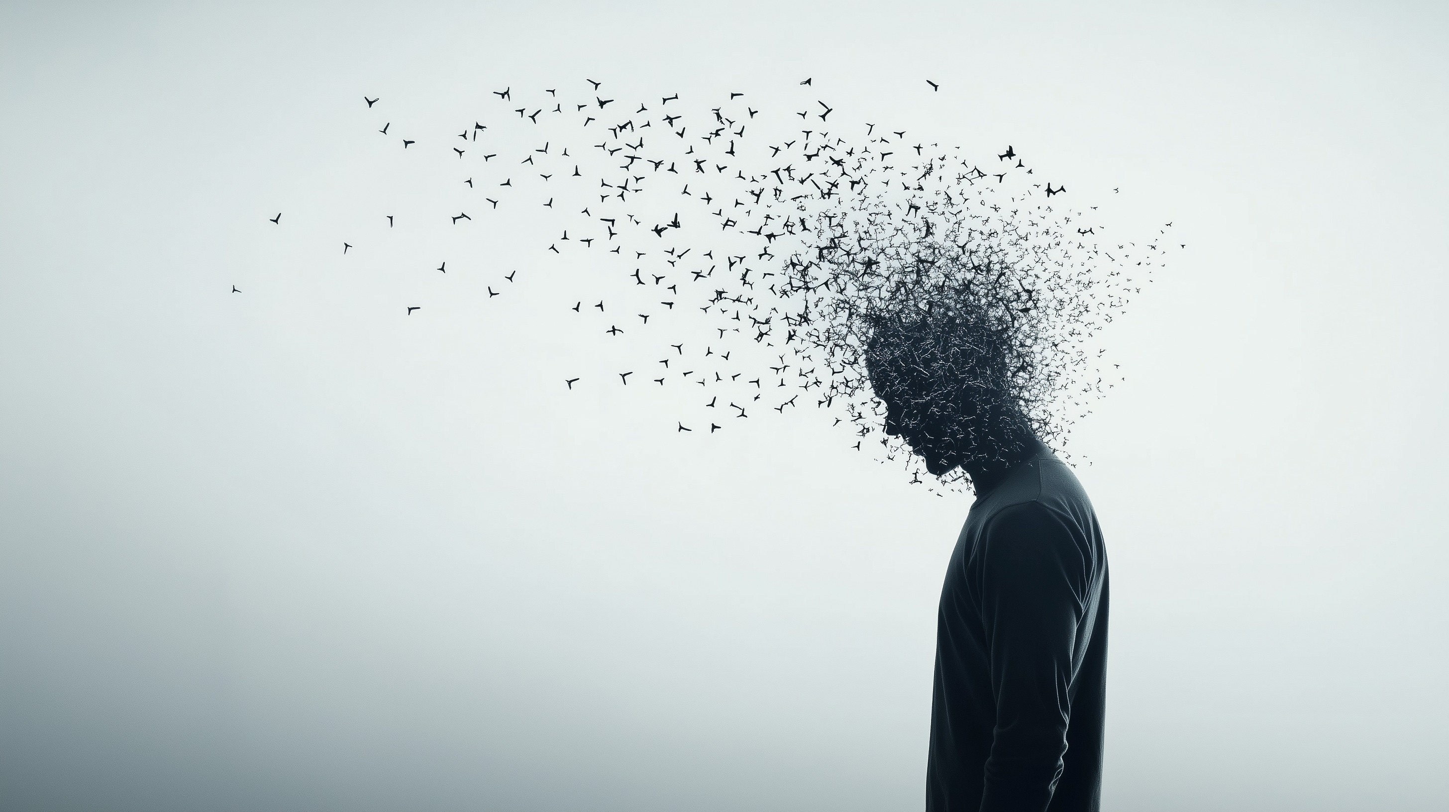 Creado con imágenes de pattozher - "Disintegrating Mind: A poignant silhouette of a person, their head dissolving into a swarm of fragmented thoughts, symbolizing mental struggle and disintegration." • MD Media - "Mental health, insanity and schizophrenia. Two personality’s in one mind. Confused people disturbed by events." • Daniel Beckemeier - "Break free and escape from insanity" • Sergio - "Lonely gloomy bald faceless man in a foggy forest, horror"
