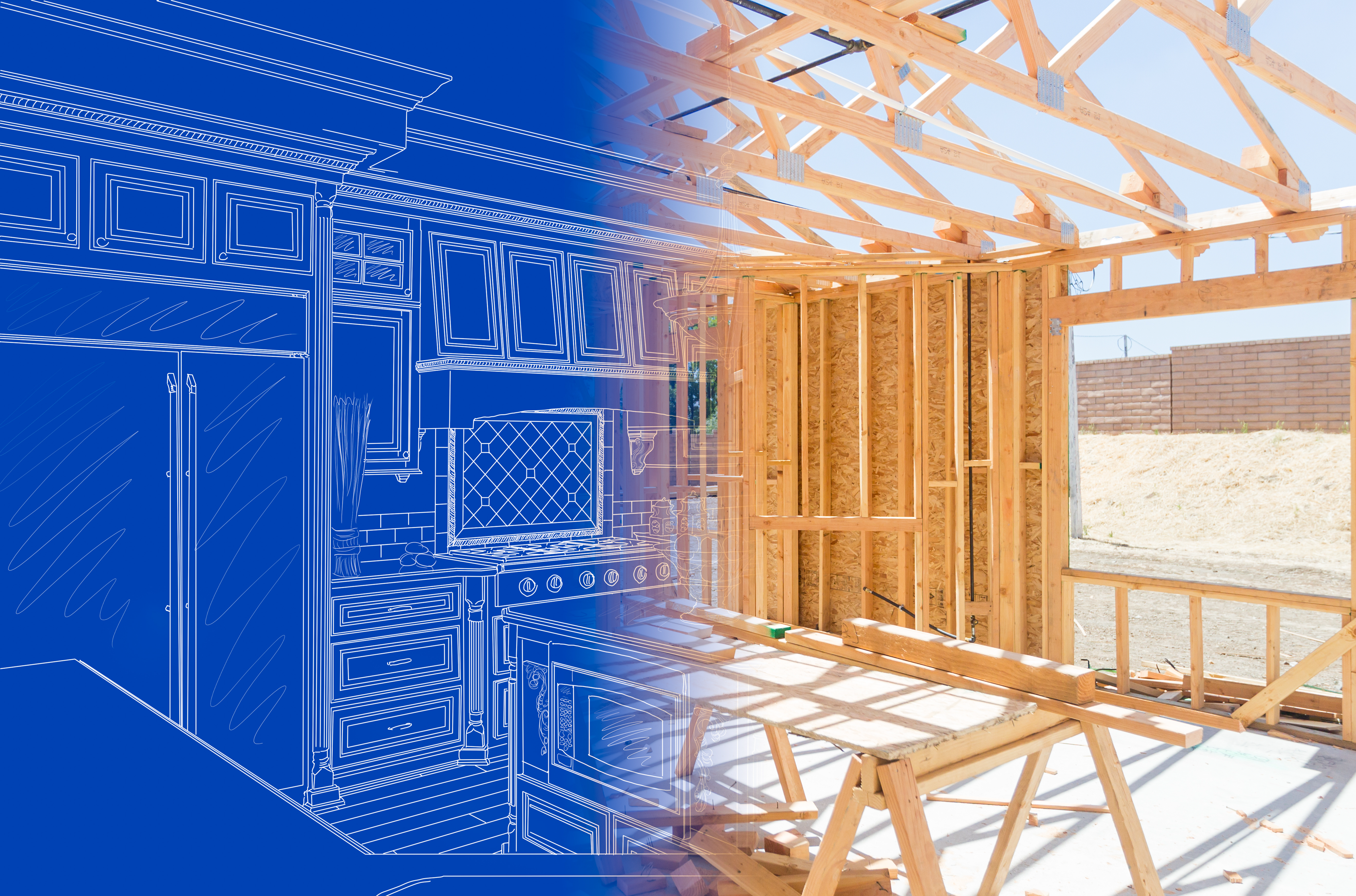 Created with an image by Andy Dean - "Custom Kitchen Blueprint Design Drawing Gradating Into House Construction Framing"