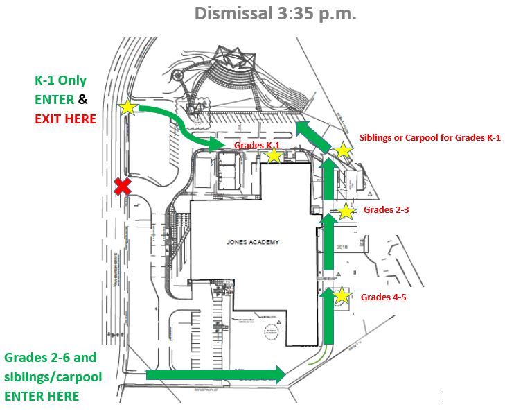 In order to allow smoother traffic and for us to serve you better in the office, we are asking that if you want to pick up your child early from school please be in the office prior to 3:15 pm. The latest that you will be able to request a change of transportation for your child/children on the same day will be 3:15 p.m. Any calls or emails after 3:15 may be denied and the child will go home their usual way – bus, car, walking, Boys & Girls Club or daycare. You may submit your request via phone call, email, or Class Dojo message. If you have more than one child at Jones Academy that will need a change of transportation, we encourage you to contact the front office. The front office staff will take care of your request.