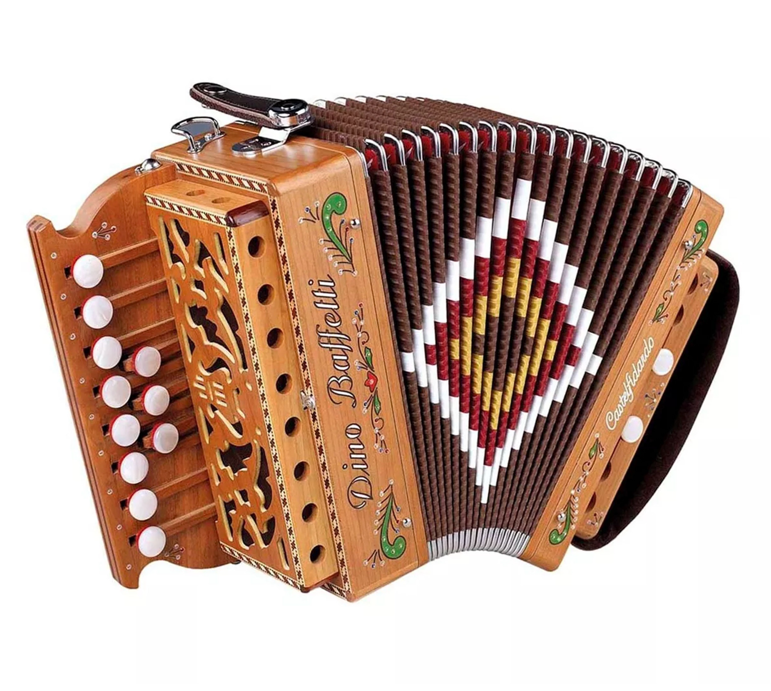 オルガネットとは?・・・中世ヨーロッパで広く演奏されていた古楽器。アコーディオンと同じ構造ですが、鍵盤ではなくボタンのようなキーでリードを鳴らし、音を響かせます。イタリアでは祭りや教会など様々な場面で演奏されイタリア南部の伝統的な曲を中心に演奏され、人々はこの楽器とともに歌い、踊ってきました。
