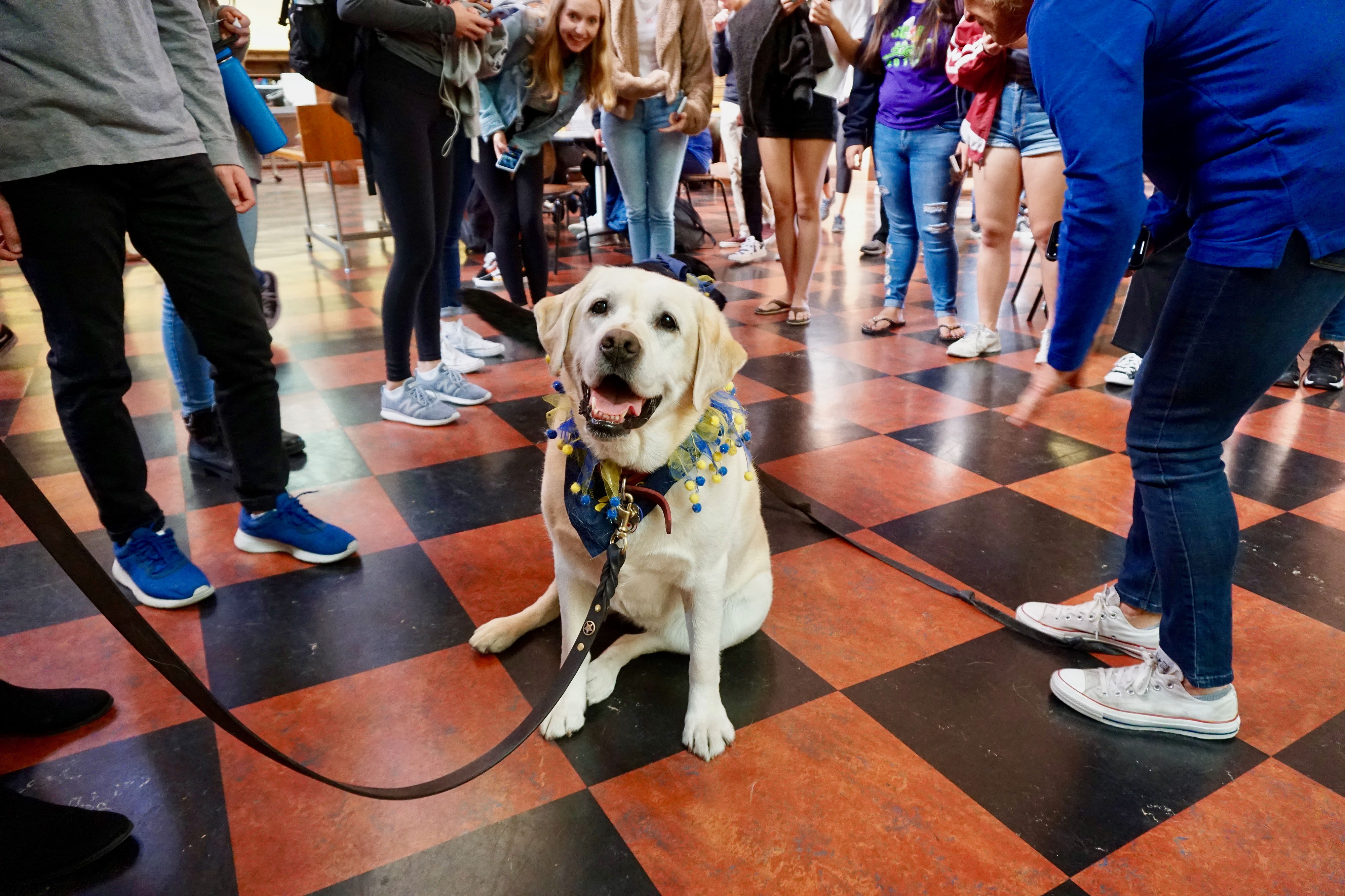To care for students' well-being and help them relax and succeed, The Library hosts activities to reduce stress, including therapy dog visits, zine-making and origami workshops, game nights, music playlists, and other de-stress activities!