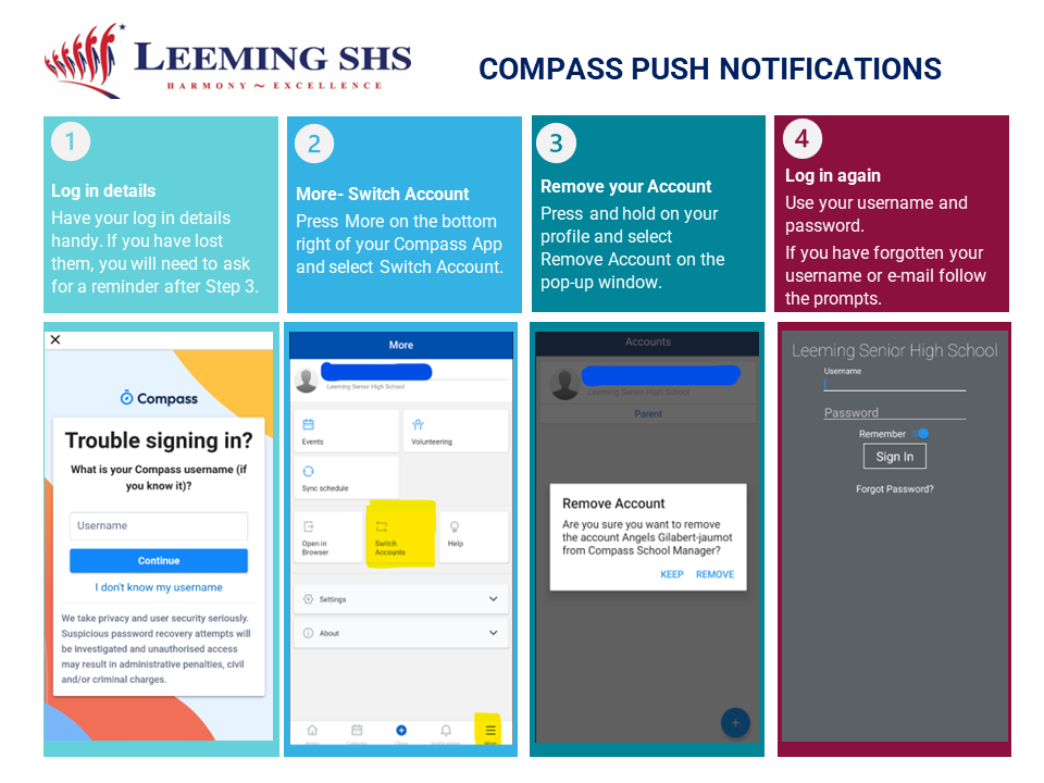 If you haven't updated your Compass app to receive push notifications on your phone for upcoming events such as excursions, please follow the steps below.