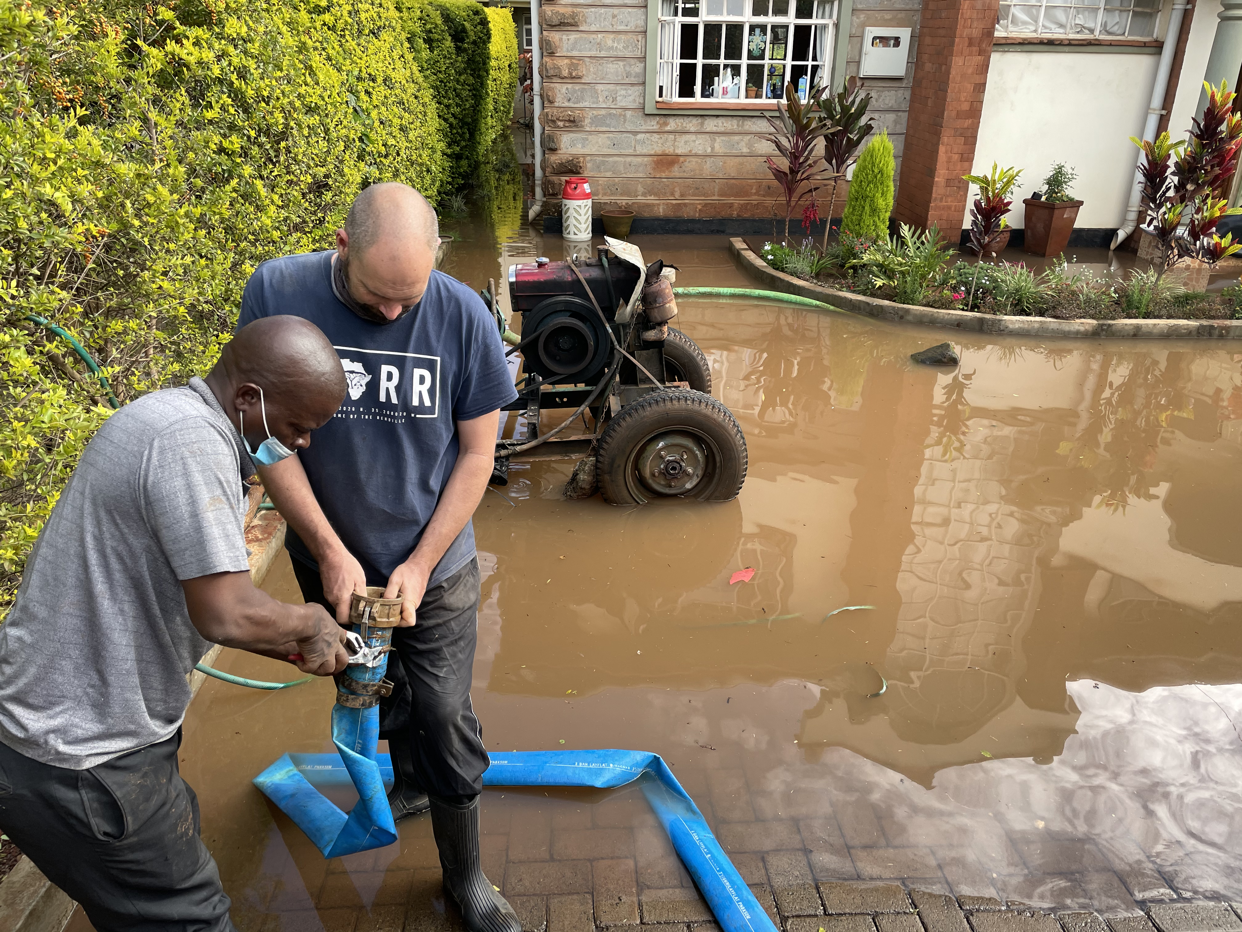 Our neighbors, fellow missionaries who invited me into their home for every meal while Breanna was away, offered to help put sandbags in place to seal the bottom of the doors. I reached out to a couple Kenyan friends and apologized for ruining their Sunday morning. Wycliff said he would be able to help organize a pickup truck full of sand and find some empty bags. The bags would be too big to be ideal sandbags, but I didn't want to lose time by sewing them into smaller bags.