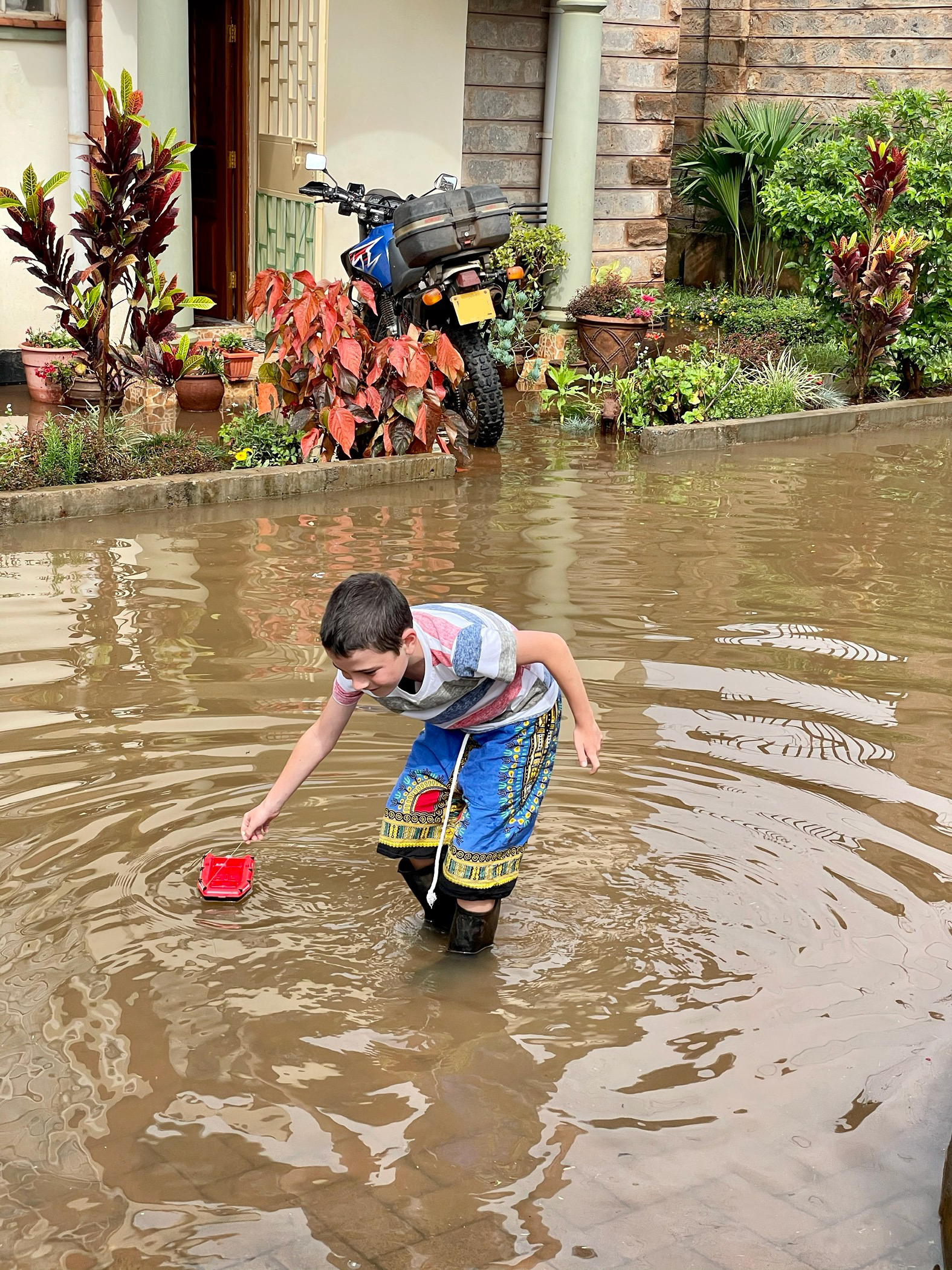 Monday began with added rain, the boys wading with rain boots to higher ground, where they caught a ride to school with another missionary family (so thankful for them), and I worked from home, with an eye on the water level. The water pump was quite a racket, so I worked out of Isaiah's room, furthest from the pump, with every window of the house and door closed, and good headphones.