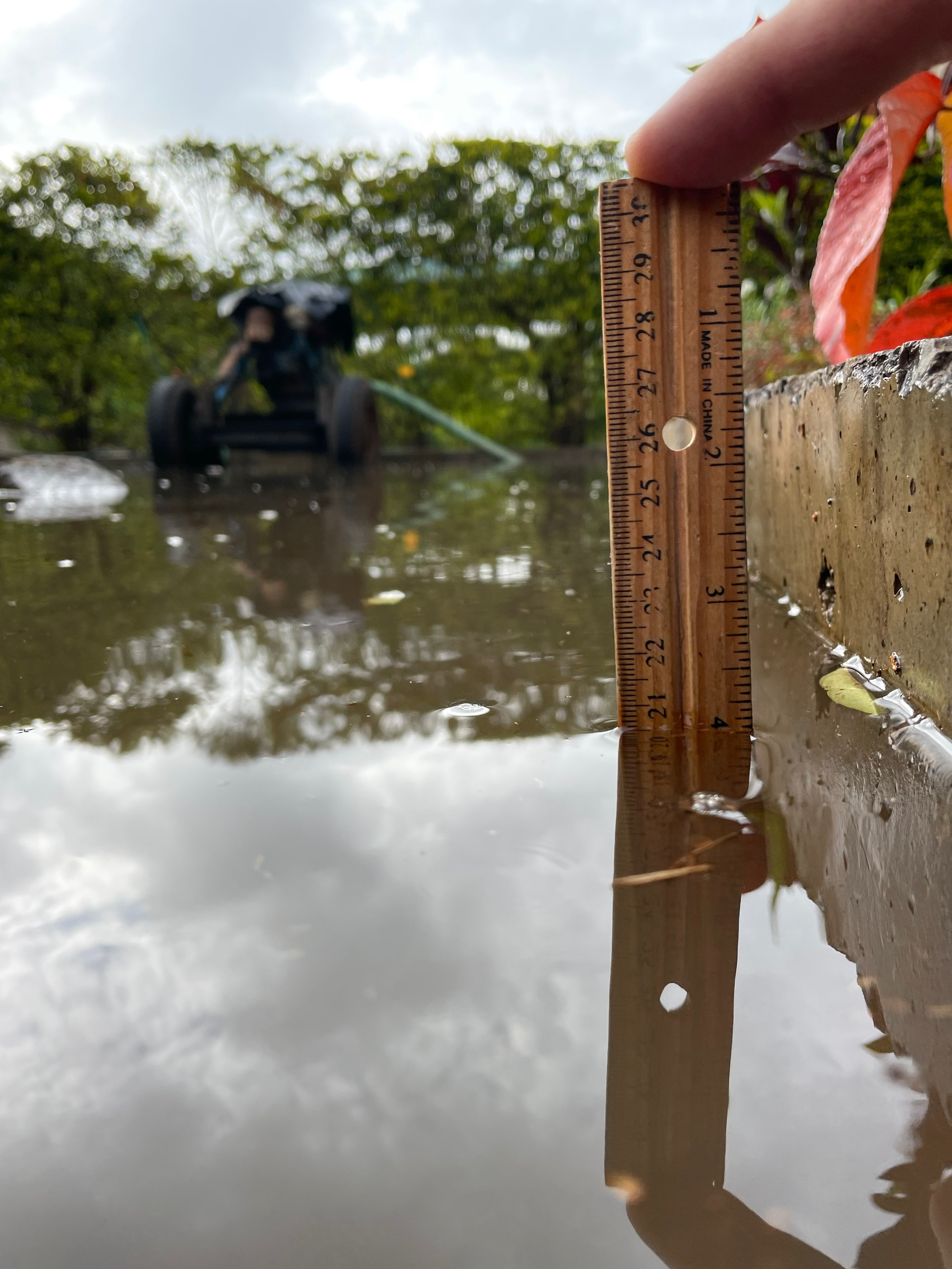 Sunday morning arrived with all the weight of a persistent bad dream. Daylight showed how much of the ground was underwater. An SQ (Servant's Quarters) stands in the back corner of the property. The water was about 1 inch below the door sill.