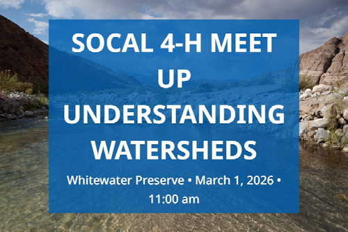 Meet up with 4-H families from across the region at The Wildlands Conservancy’s Whitewater Preserve near Cabazon, California, for a hands-on learning activity focused on watersheds, a guided hike through Whitewater Canyon, and exploration of the Wild and Scenic Whitewater River.