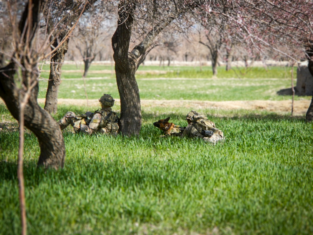 In early 2013, Australia's elite special operations units supported a counter-leadership mission in the Langar District of Uruzgan Province. Tasked to clear a helicopter landing zone and apprehend an insurgent who, after an initial engagement, had moved to higher ground using a dry river bed as cover. Ryan cautiously moved along the river bed, weapon at his shoulder and safety catch unlocked as Combat Assault Dog (CAD) FAX lead the way.