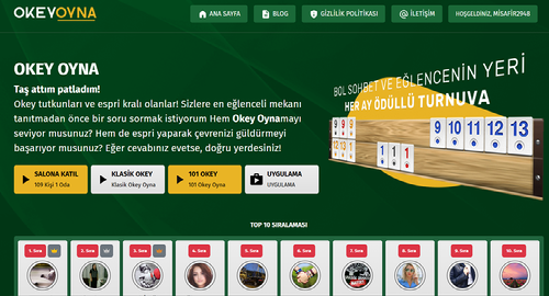 Türkiyenin ve Türk Kullanıcılarını en sevdigi masa oyun türlerinden birisi olan okey oyunu OKEYOYNA.COM Adresinde yeni kullanıcıları ağırlamakla yükümlüdür.
