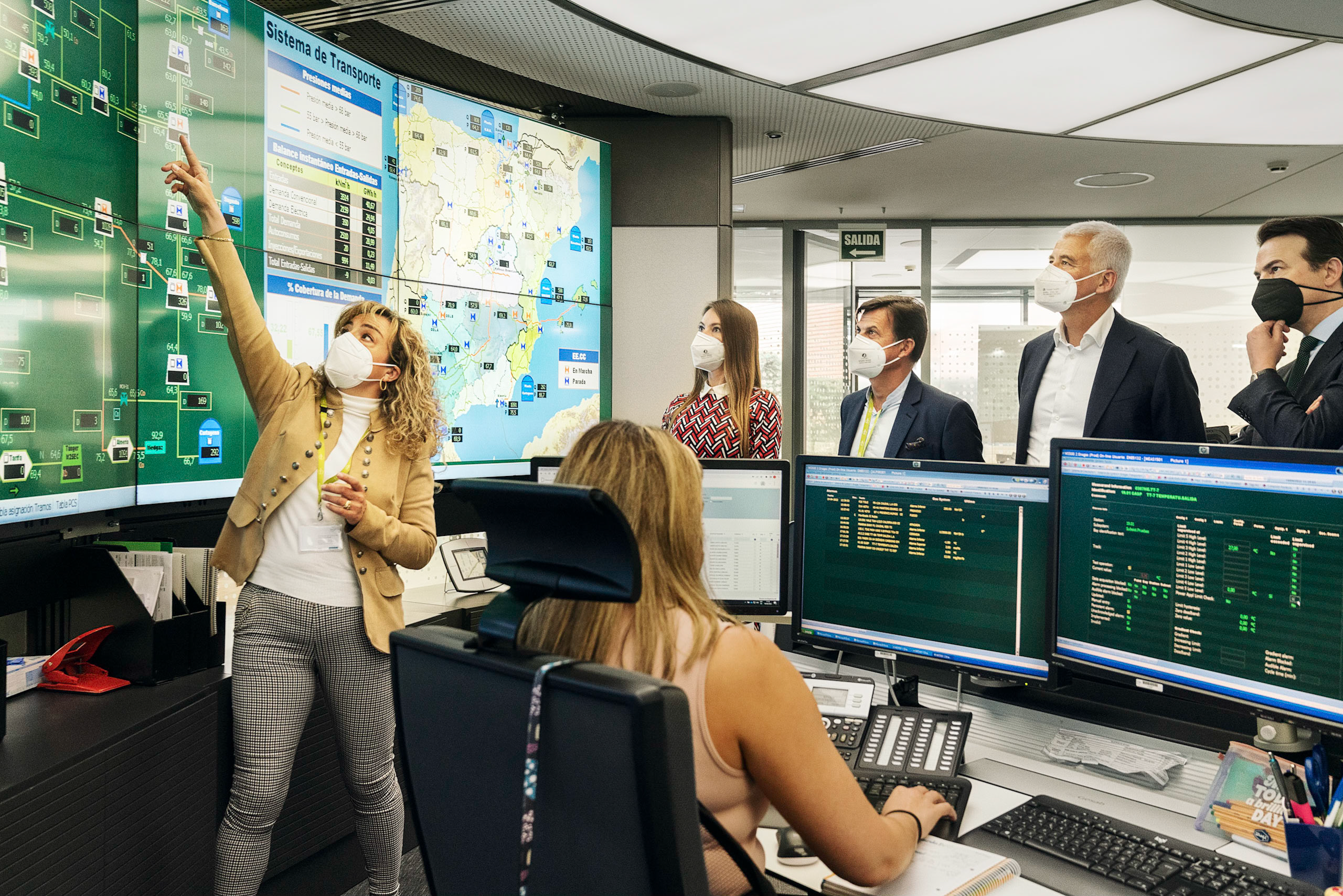 In Enagas' Madrid control room, Lepercq (second from right) and the company's president Arturo Gonzalo Aizpiri (right) study potential pipeline routes on their monitors. The concept follows hydrogen's full journey - solar panels generate electricity in Mauritania by splitting water into hydrogen and oxygen, creating a transportable form of renewable energy that can be shipped to European factories. While the technical challenges are daunting, the reward could be significant: a new energy trade route.