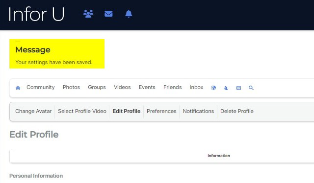 The user should see a Message on the upper part saying, "Your settings have been saved." once the changes have been completed.