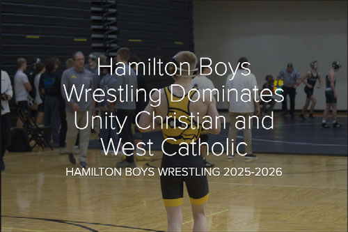 WHAT HAPPENED: The Hamilton Boys Wrestling team dominated at their quad last night, earning strong victories over Unity Christian and West Catholic. The team showed depth and intensity across all weight classes, controlling matches early and finishing strong to secure both wins. CAPTION: Broden Van Wieren was unstoppable at the quad last night, winning all of his matches and leading the way for Hamilton Wrestling.