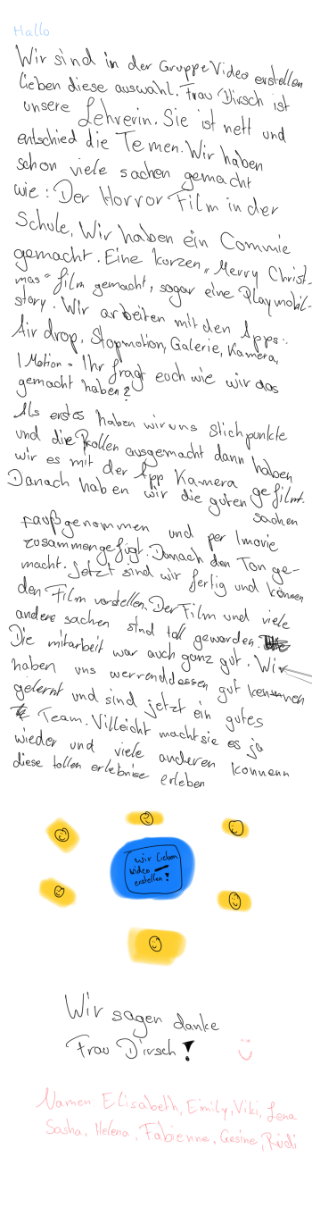 Ohne viel Vorlauf haben wir ein Paar Szenen zu den neuen Klassenzimmern und dem Pausenhof zusammen geschnitten. Es sollte alles noch vor den Herbstferien fertig sein. Als lauter Neulinge haben wir da doch ein bisschen was hingekriegt :)