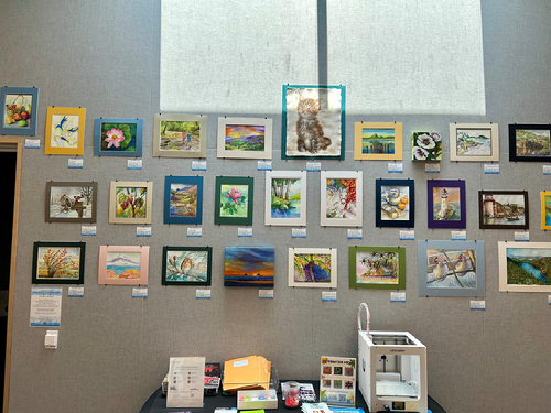 As seen in the June STAR, the Senior Art Show is now on display at the Brisbane Library. On Tuesday, June 24th, from 6 to 7:15 PM, there will be an Artists Reception in the Library's Community Room. Teacher Shirley invites the public to join them; she's planning a fun game again, with prizes for the winners.