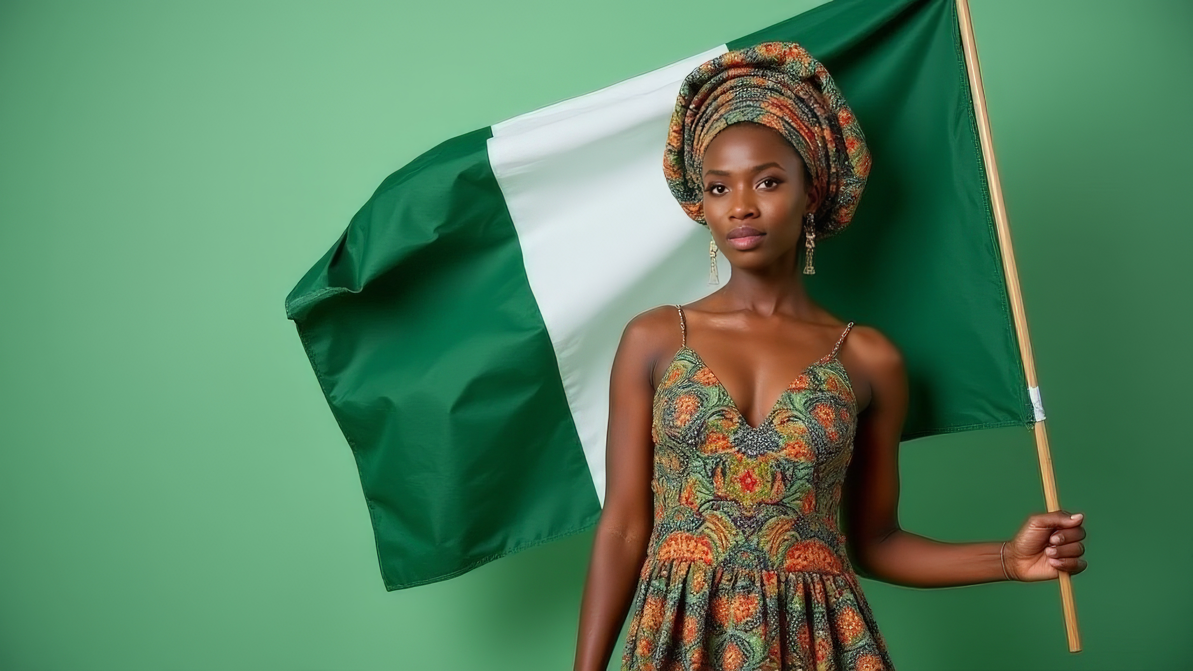 Created with an image by Issaka - "Nigerian woman in traditional attire holding Nigeria flag behind her"
