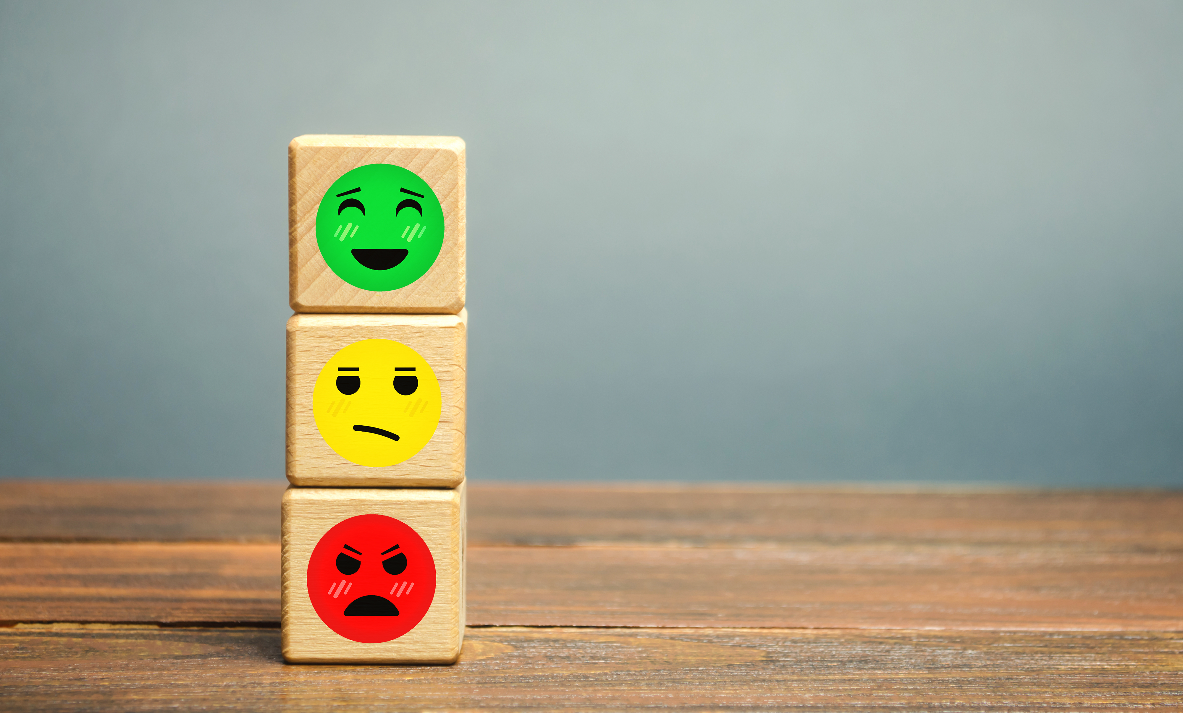 Created with images by Andrii Yalanskyi - "One block with a positive face stands out from the rest of the negative emotions. Concept of good rating, review and feedback. Satisfied customers." • Edward - "Letter Tiles - Story Time" • ontronix - "dice isolated on white background"