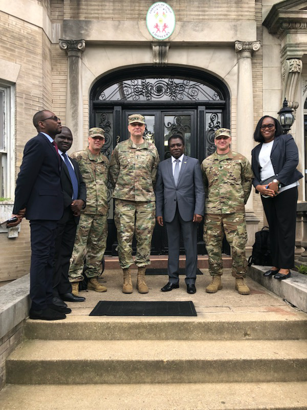 While in the nation's capital on May 14, Maj. Gen. Al Dohrmann, adjutant general (center left) and Command Sgt. Maj. Eric Binstock, senior enlisted leader (center right) visited the Togo embassy to meet with the Togolese Ambassador to the United States, the honorable Frederic Edem Hegbe (center) and some of his staff. Visiting with the ambassador helps maintain our great relationship with our State Partnership Program partner.