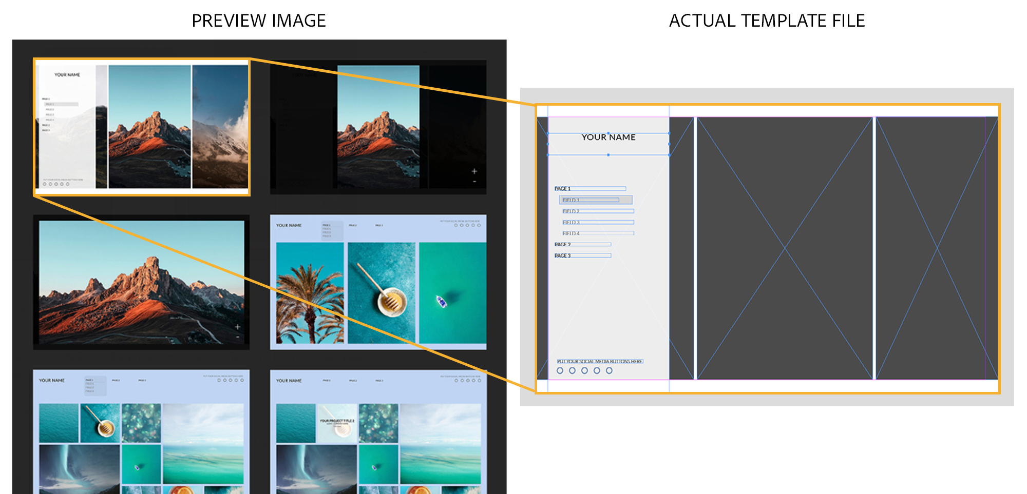- Placeholder areas must be clearly labeled as "[YOUR IMAGE HERE]" in the layer names to indicate to users that they should customize these areas.