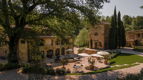 Housed in a re-imagined 12th century listed monastery - the main villa, each Deluxe room comes with its own color concept in an elegant mid-century style while blending rich Italian history.