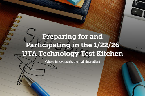 We are thrilled that you will be joining us on January 22, 2026 for a new, collaborative adventure--the UTA Technology Test Kitchen in the lobby of Trinity Hall/Trinity 112, or Trinity 105, at your designated time between 1:00-2:30 pm.