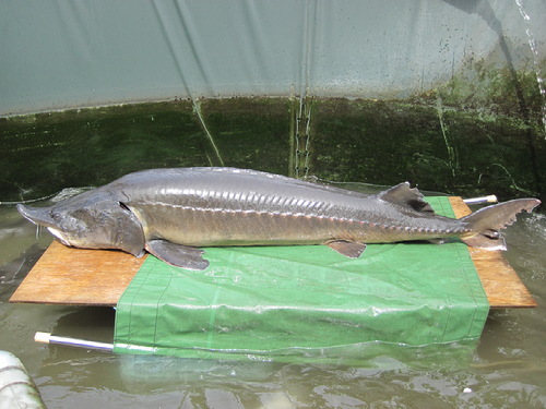 However, there are still wild Mikado Sturgeon outside Hokkaido. Although the spawning lineages in the Teshio and Ishikari Rivers have disappeared, several pairs are still reported to spawn annually in the Tumnin River in Russia's Maritime Province. According to past surveys, the Mikado Sturgeon spawned in the Tumnin River spend three or four years as juveniles in the river, then migrate to the sea where they grow. They probably return to the Tumnin River to spawn when they reach puberty after about 10 to 15 years, but the Mikado Sturgeon that migrate around Hokkaido are sometimes caught in fixed nets. Hokkaido University has asked fishery cooperatives throughout Hokkaido to contact them when sturgeon are caught, and has collected a considerable number of wild sturgeon over the past 30 years. At present (2023), there are five surviving Mikado Sturgeon collected by Hokkaido University and affiliated organizations. We would like to increase the number of these sturgeon. In the future, we hopes to return some to the Teshio River, which was once teeming with sturgeon.