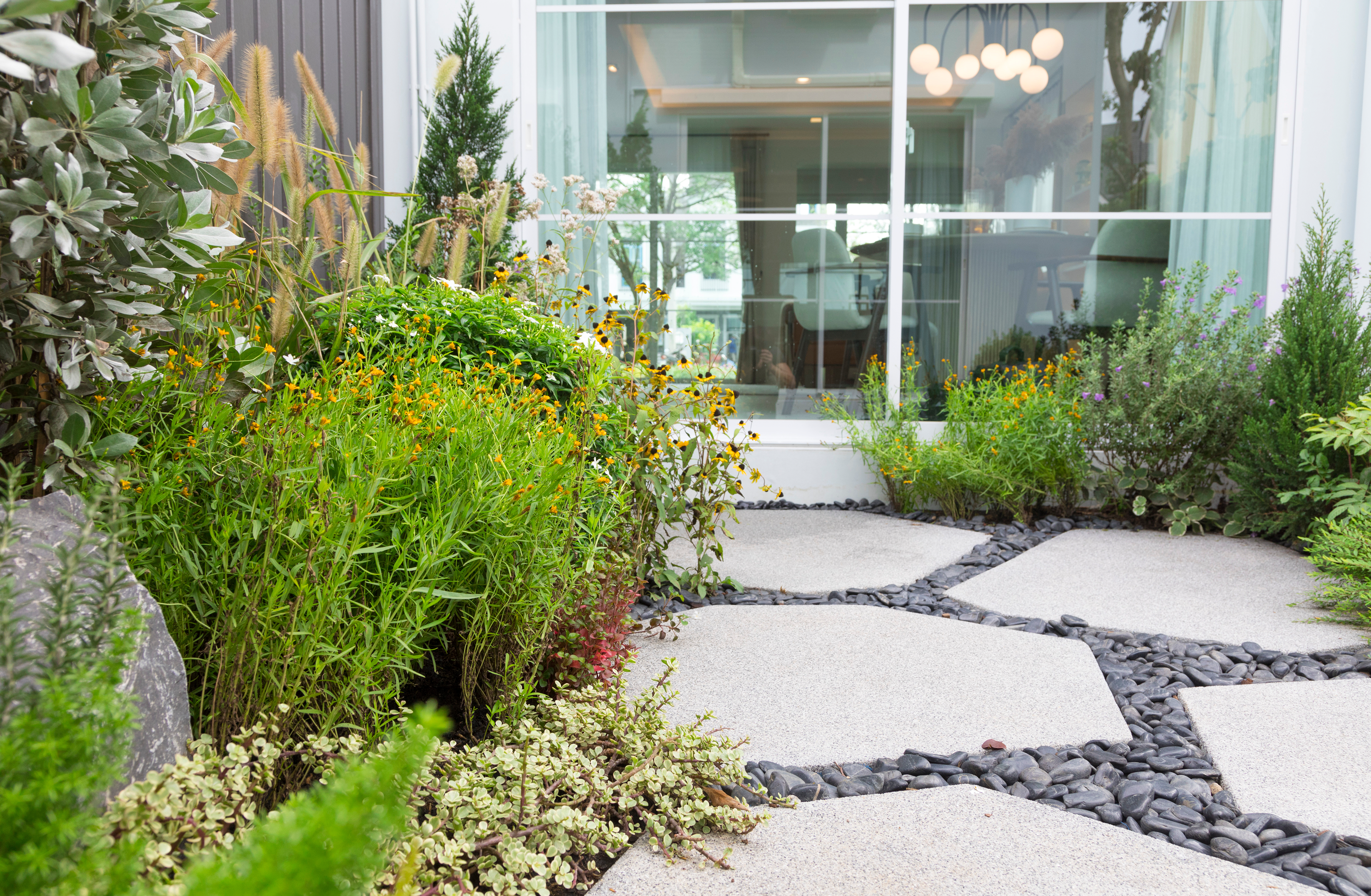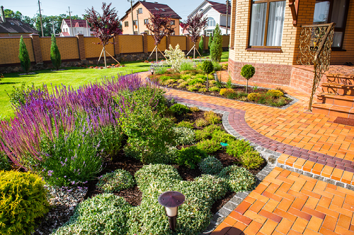 Created with images by white78 - "beautiful landscaping with beautiful plants and flowers" • bennnn - "Small gardens with beautiful different green flower and plant in home backyard garden." • scaliger - "Landscaping panorama of home garden. Landscape design with plants, flowers and stone in backyard. " • laughingmangovideo - "landscaped garden" • jpldesigns - "House Manicured Frontyard with Water Fountain"