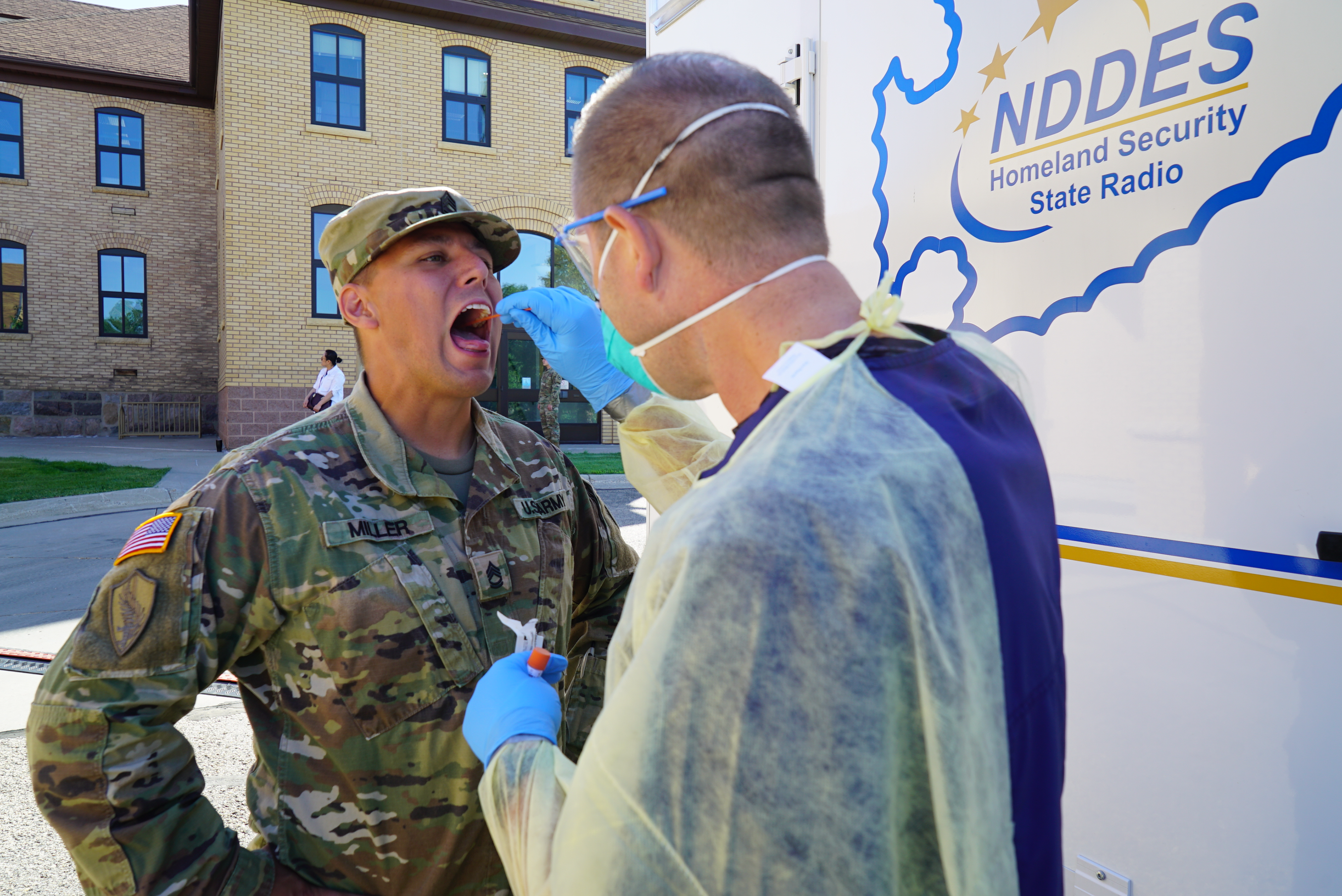 Members of the N.D. National Guard along with civilian employees of both the Guard and the N.D. Department of Emergency Services were offered an opportunity to be tested by members of the N.D. Department of Health (NDDoH) on Fraine Barracks on July 14. Testing was not mandatory but workers were encouraged to participate.