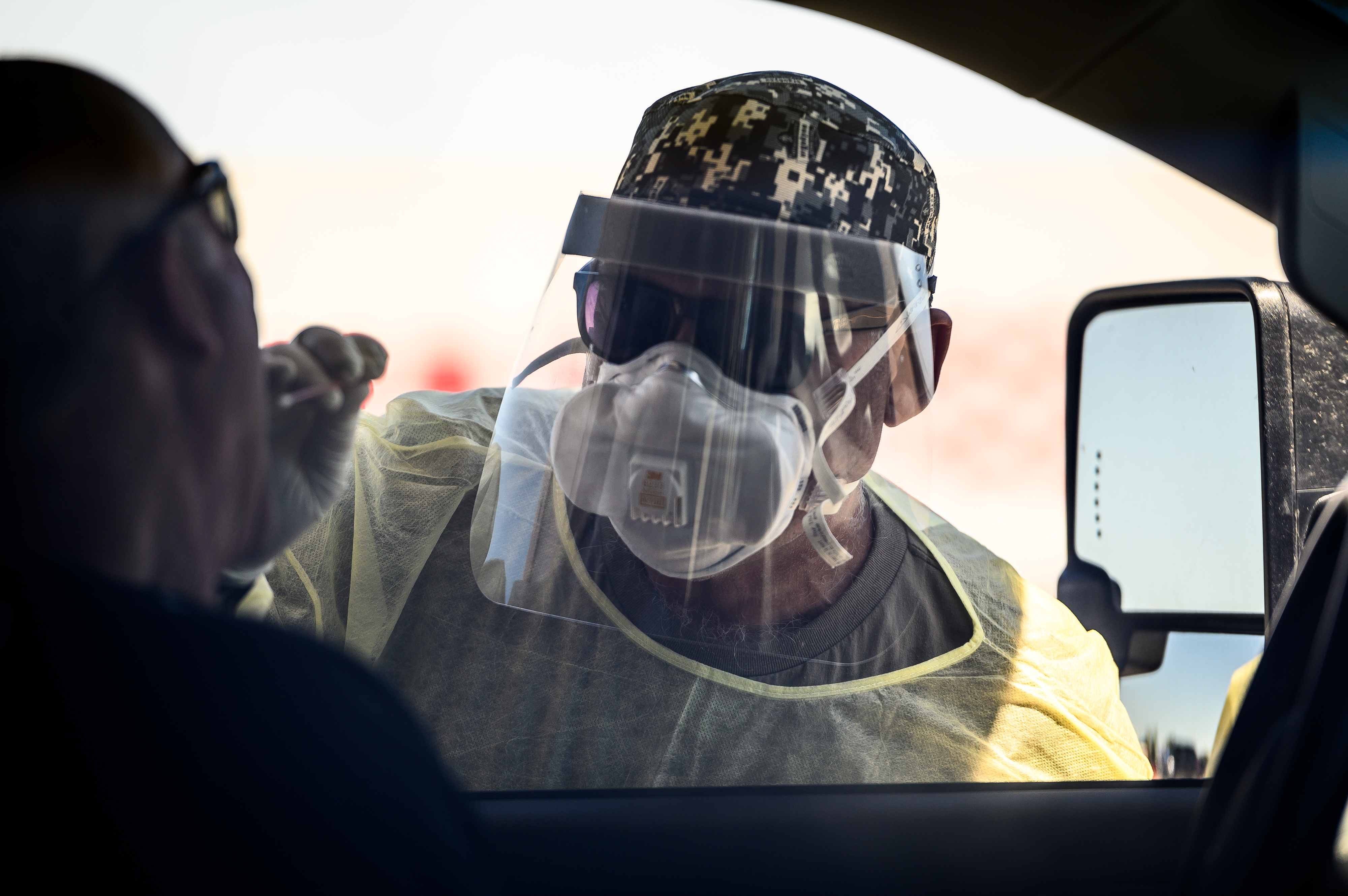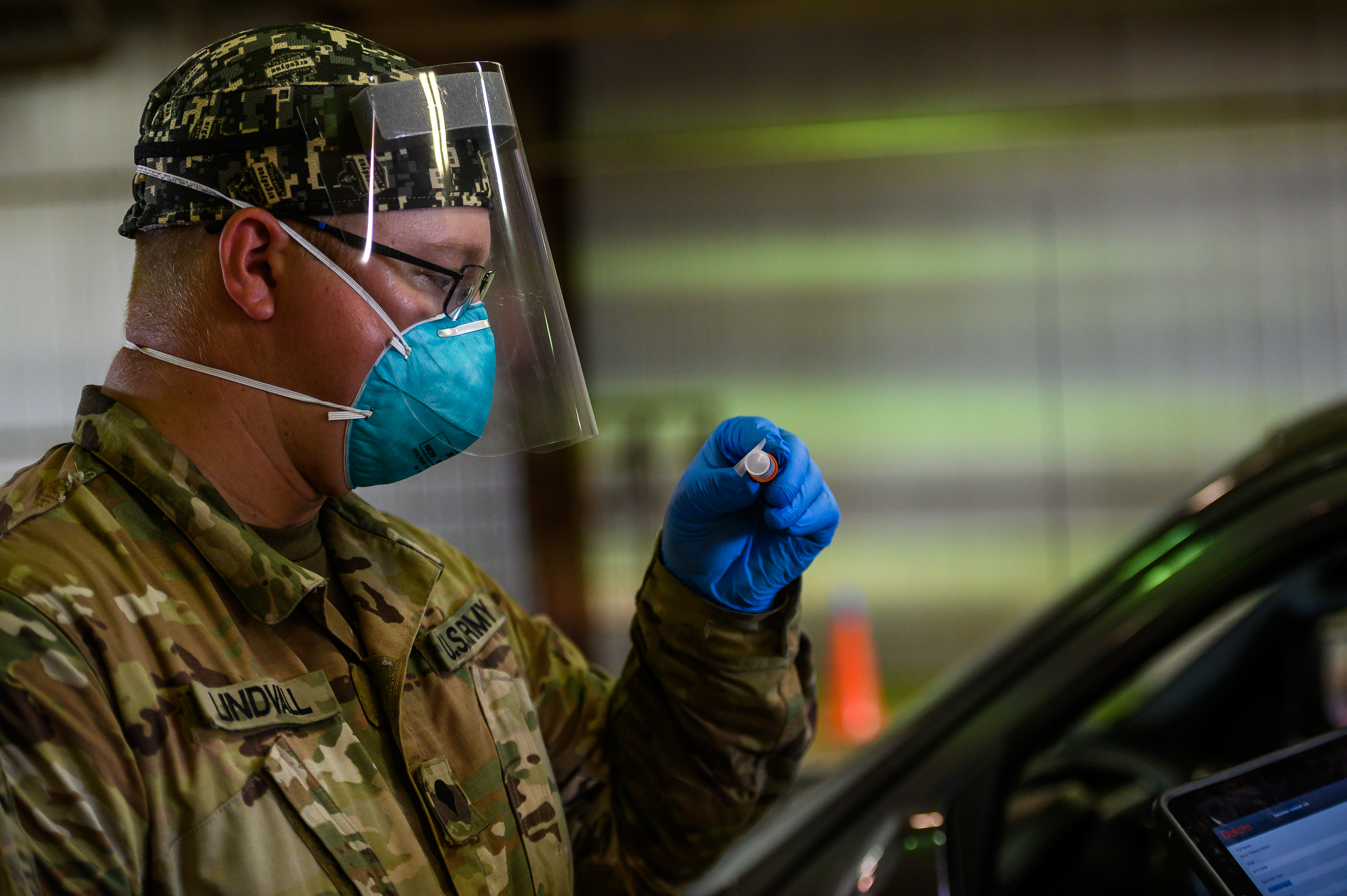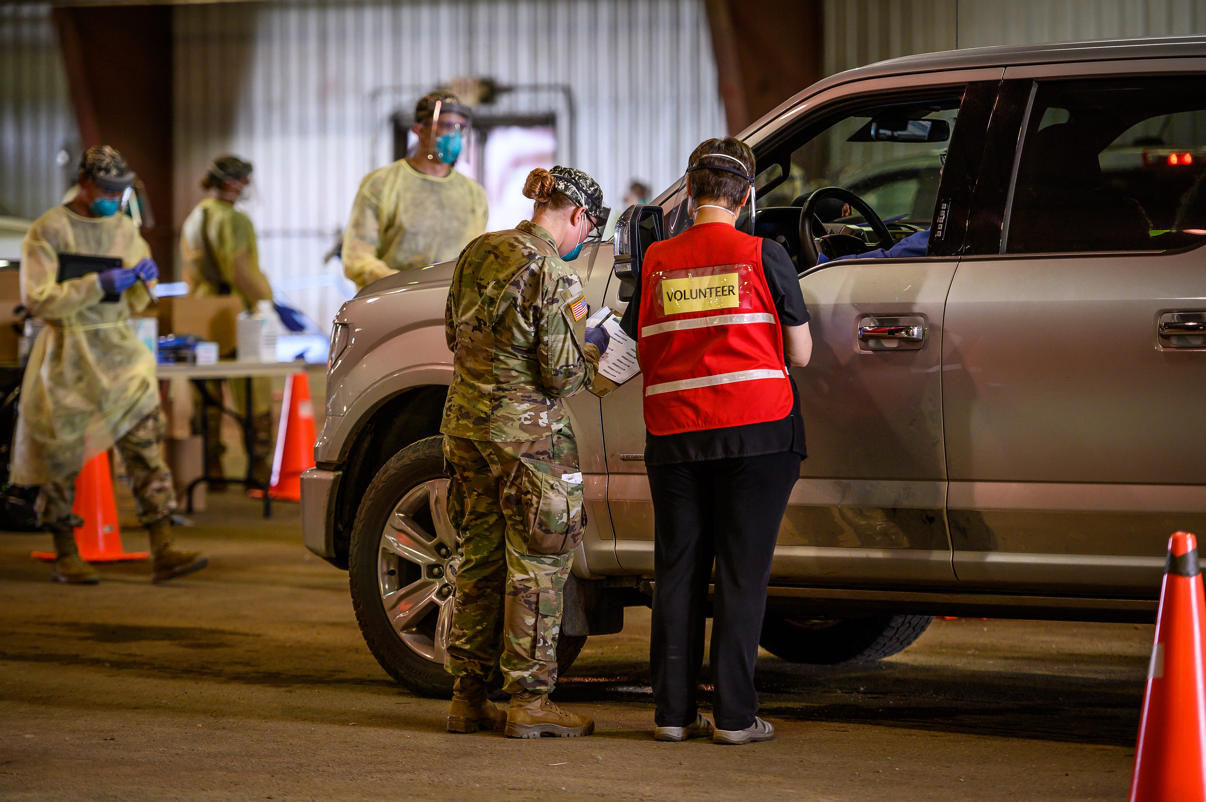 The N.D. National Guard assisted with COVID-19 testing in Valley City on July 8.