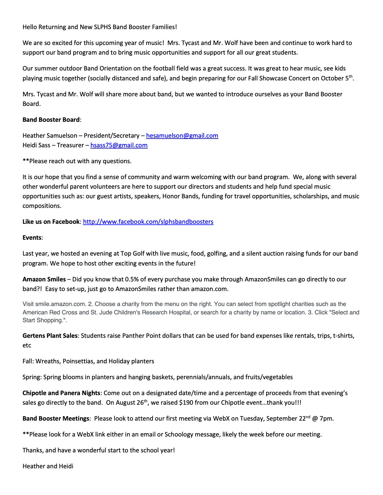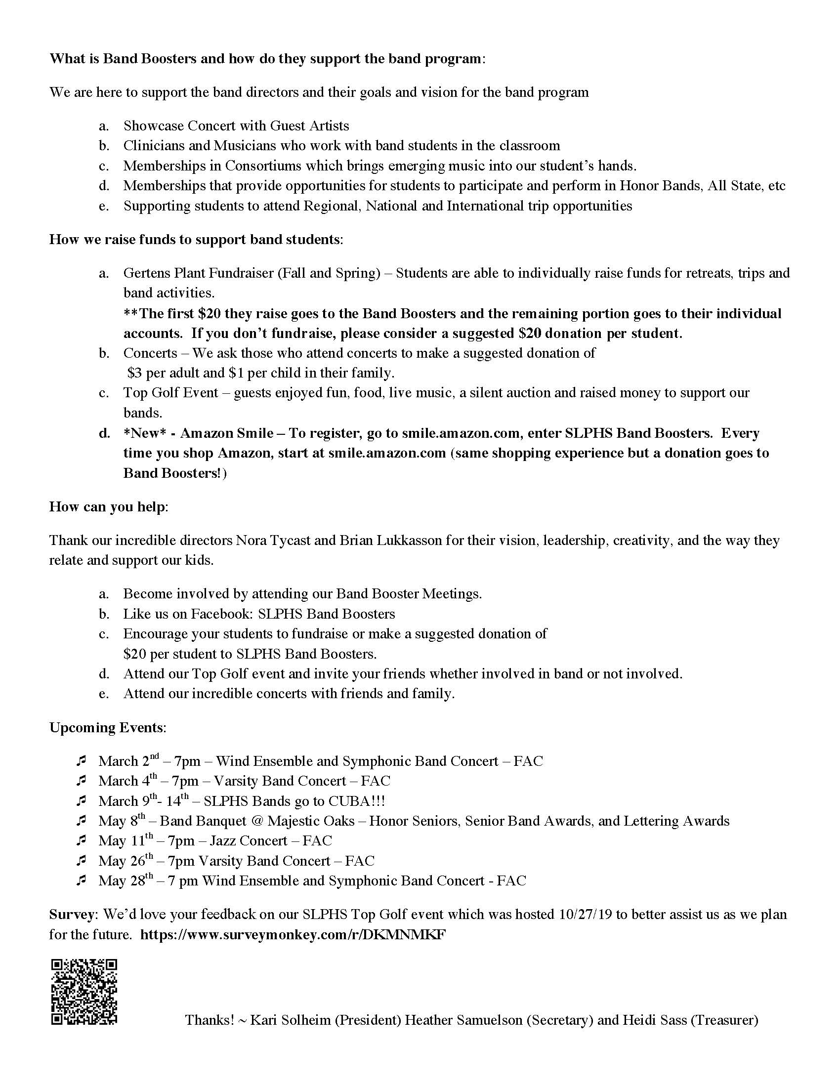 Welcome to the 2023-2024 School Year! The SLPHS Band Boosters are excited about all opportunities our band students will have this year!