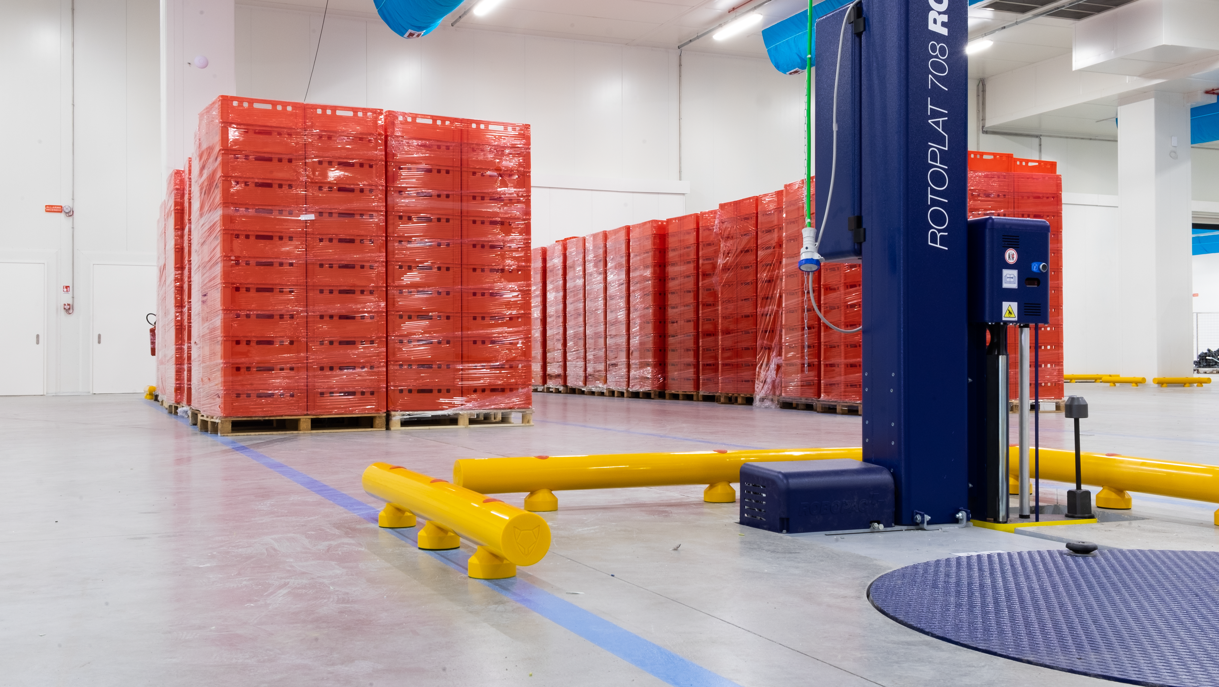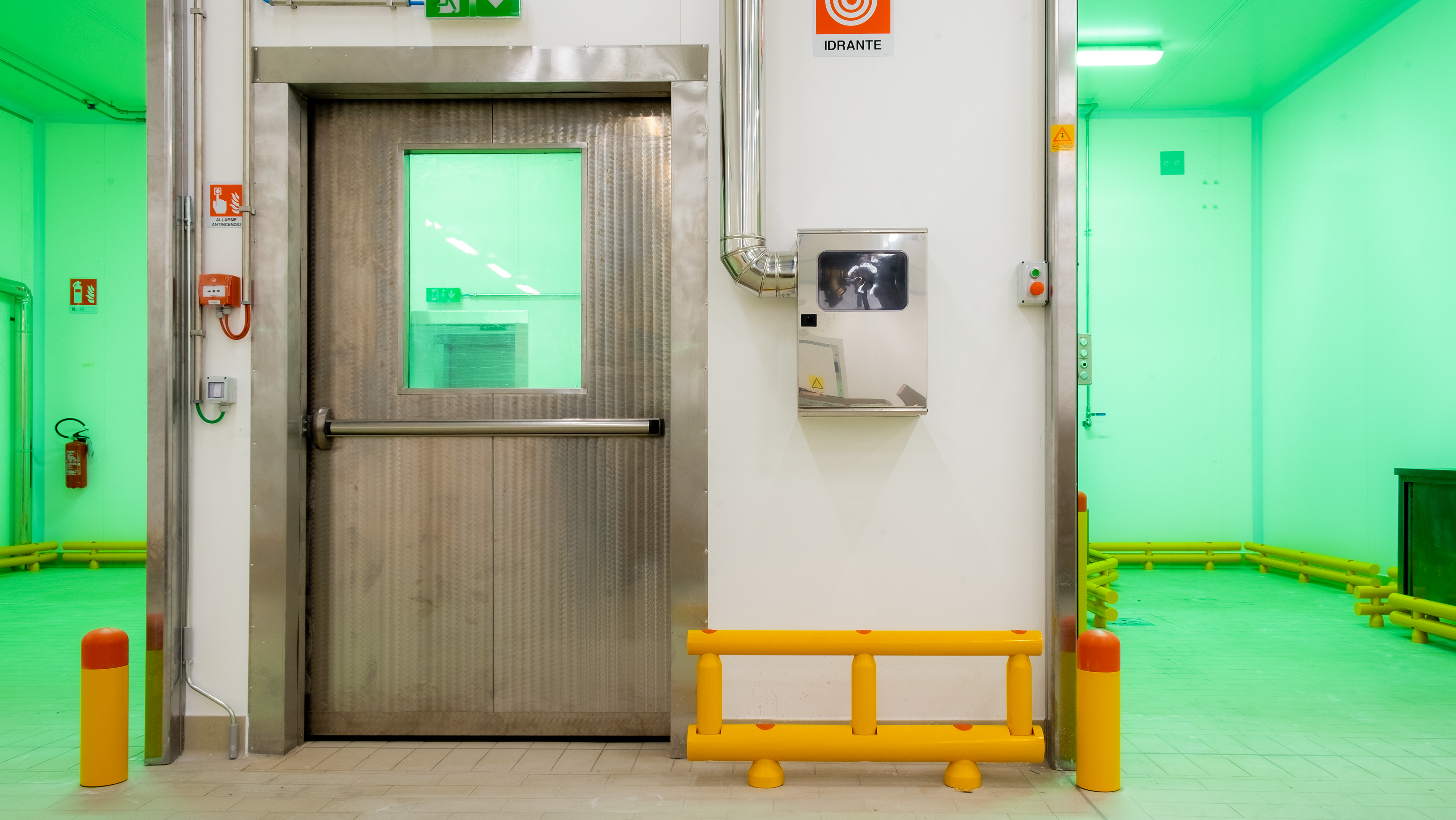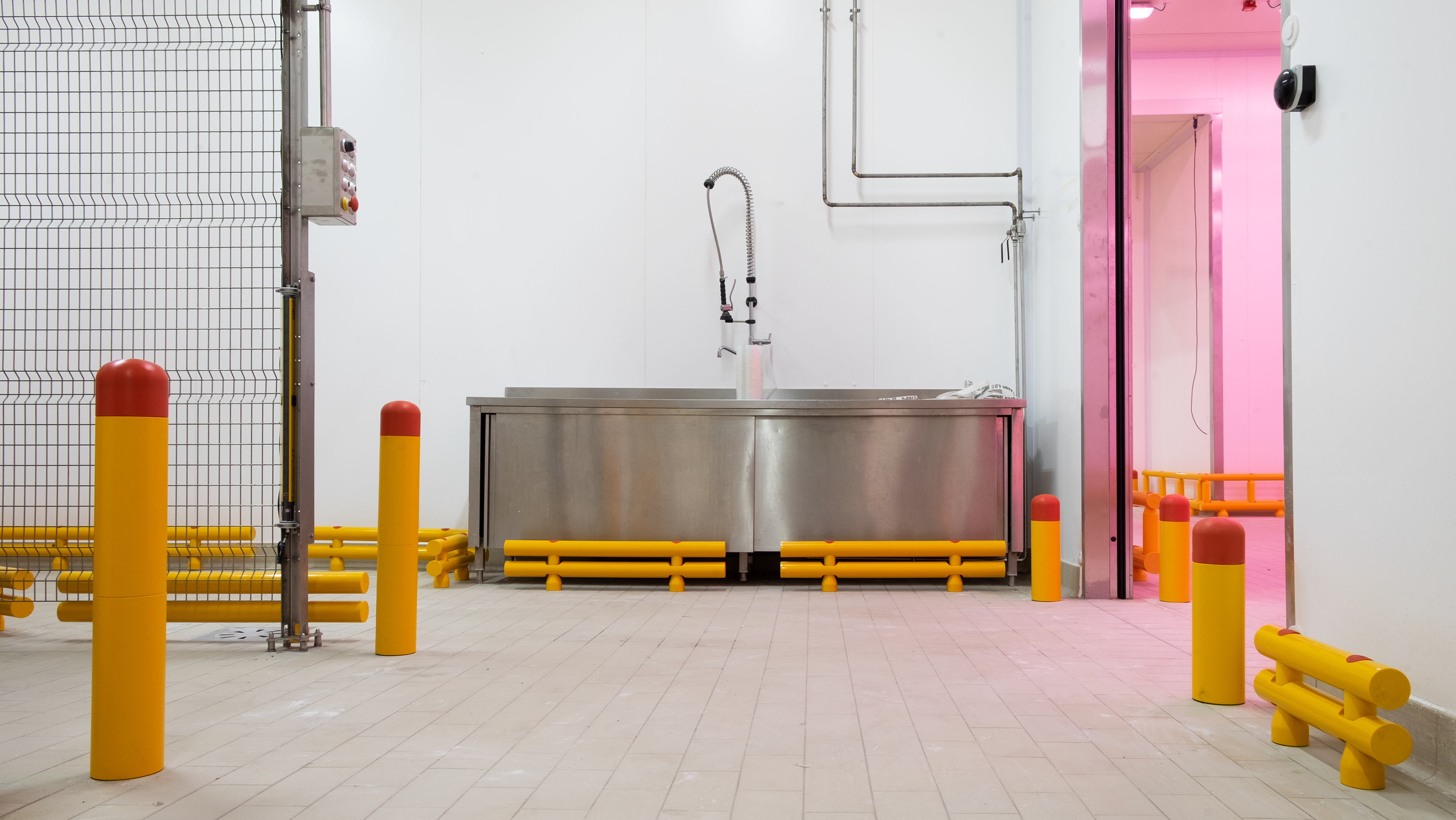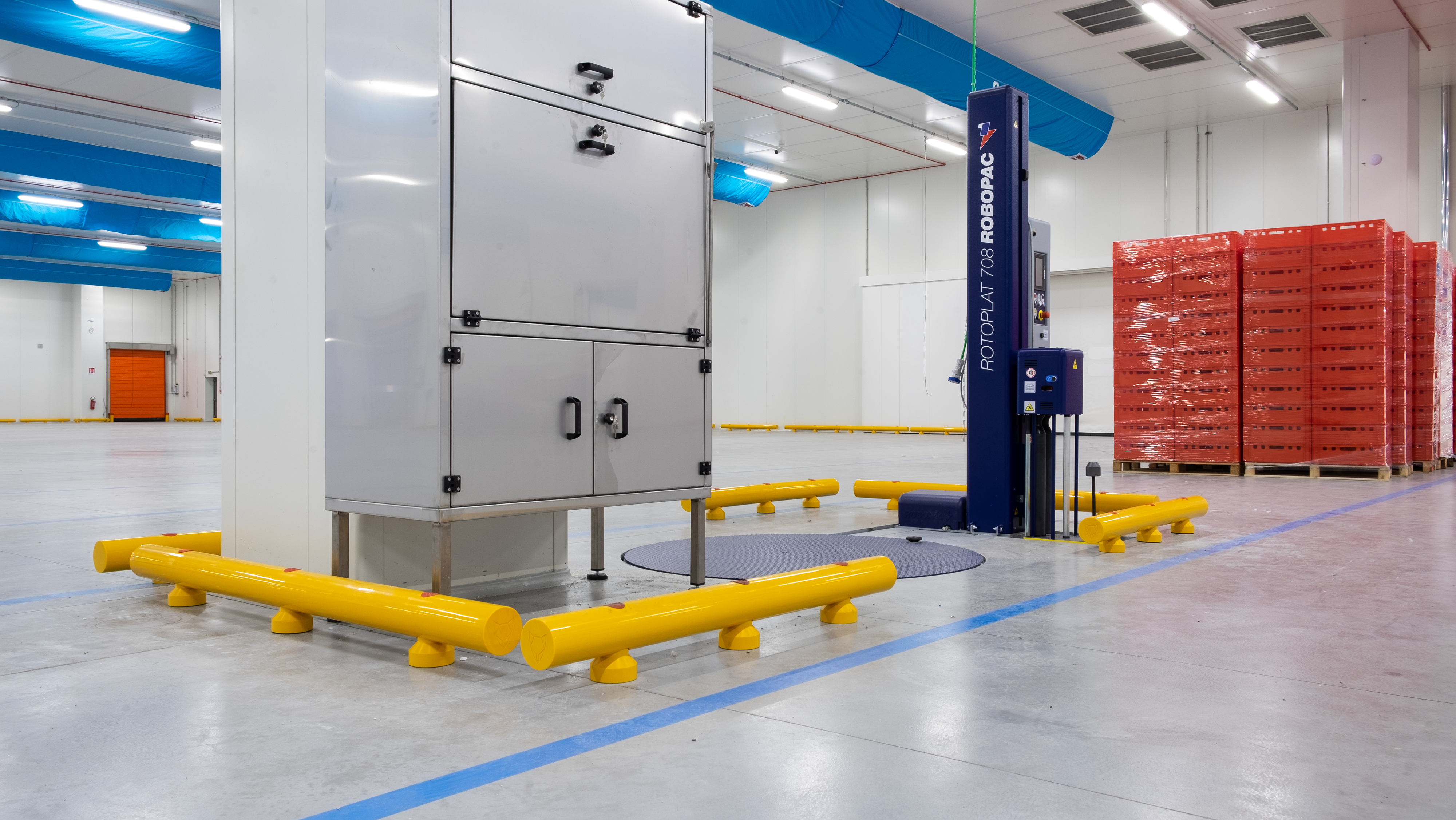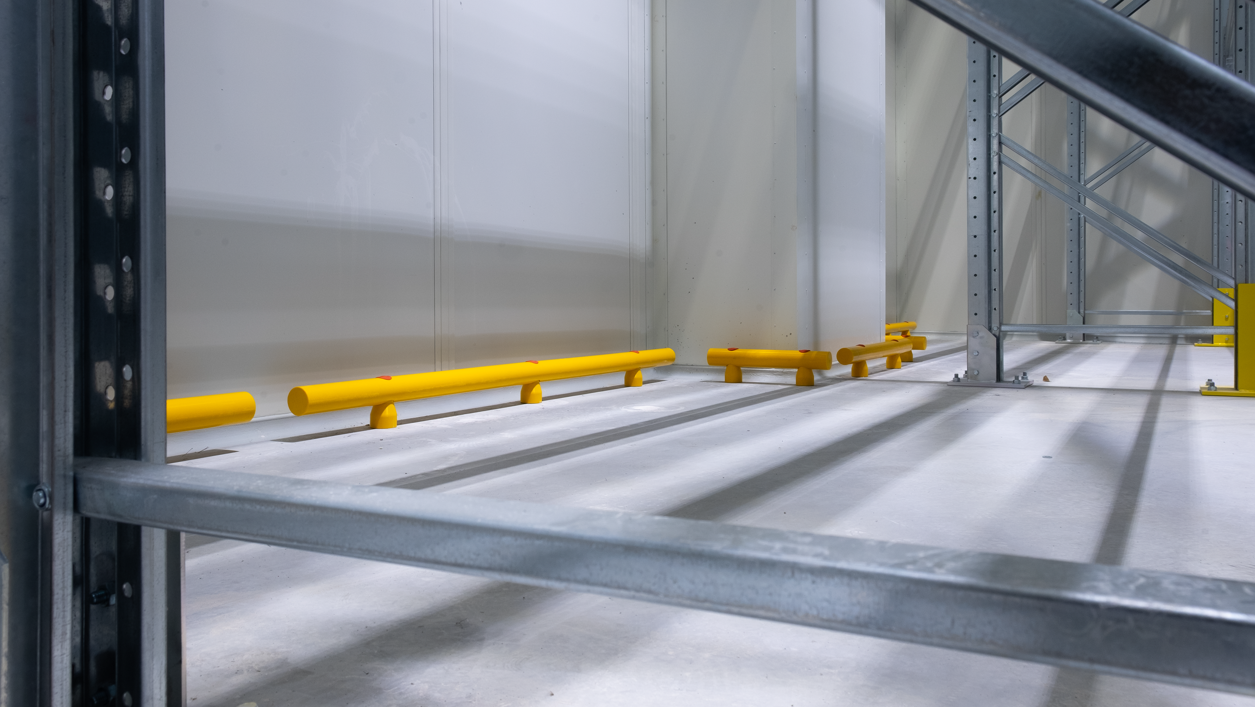 Le colonne e le pareti che circondano i macchinari sono elementi vulnerabili all’interno dello stabilimento Bencarni, poichè carrelli e transpallet possono colpirle danneggiandole vistosamente. Abbiamo protetto quest’area con i nostri Guardrail Antiurto, progettati e certificati per arrestare la corsa di un veicolo e trasferire l’energia d’impatto sprigionata al pavimento, senza che questo venga danneggiato.
