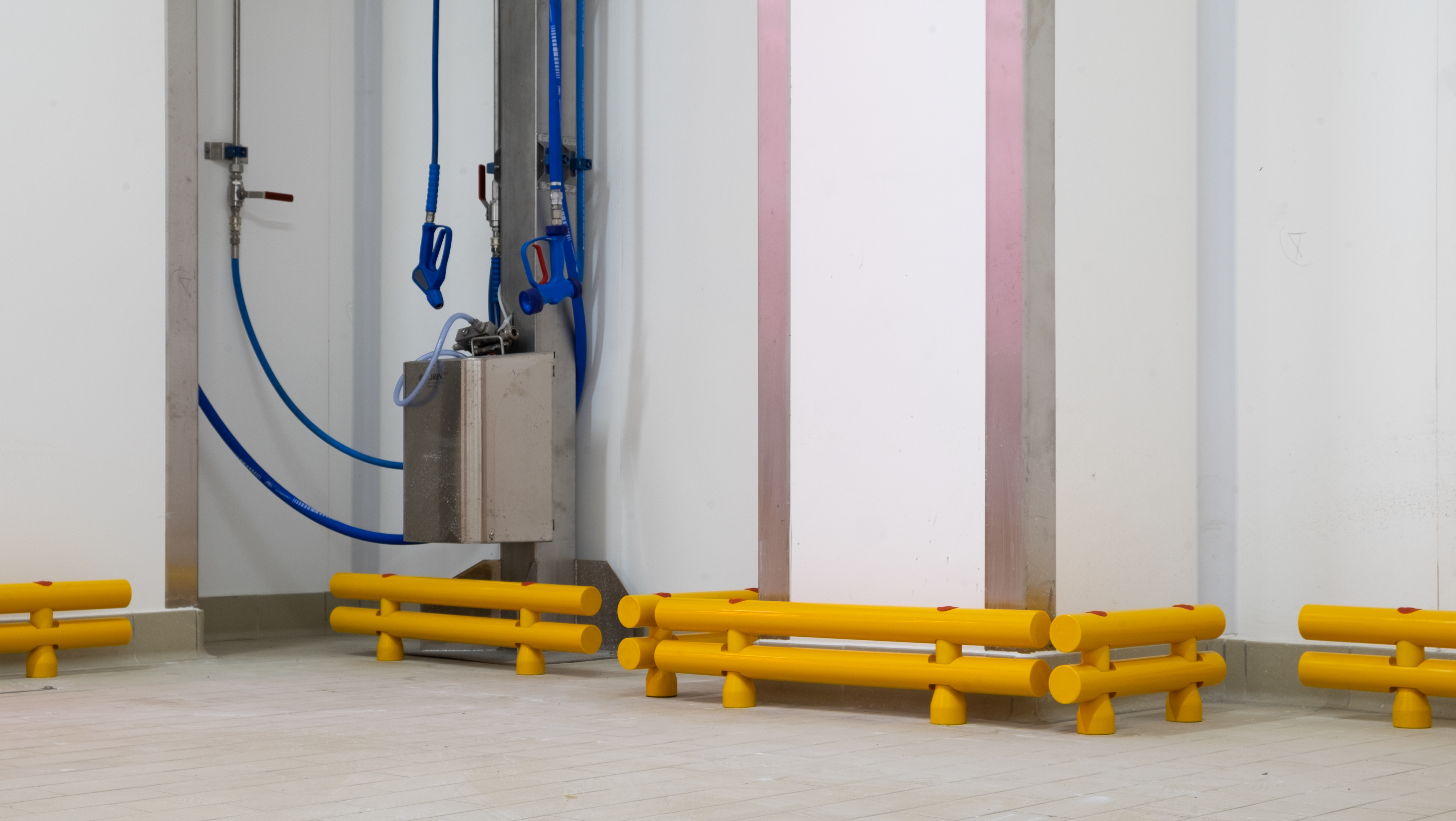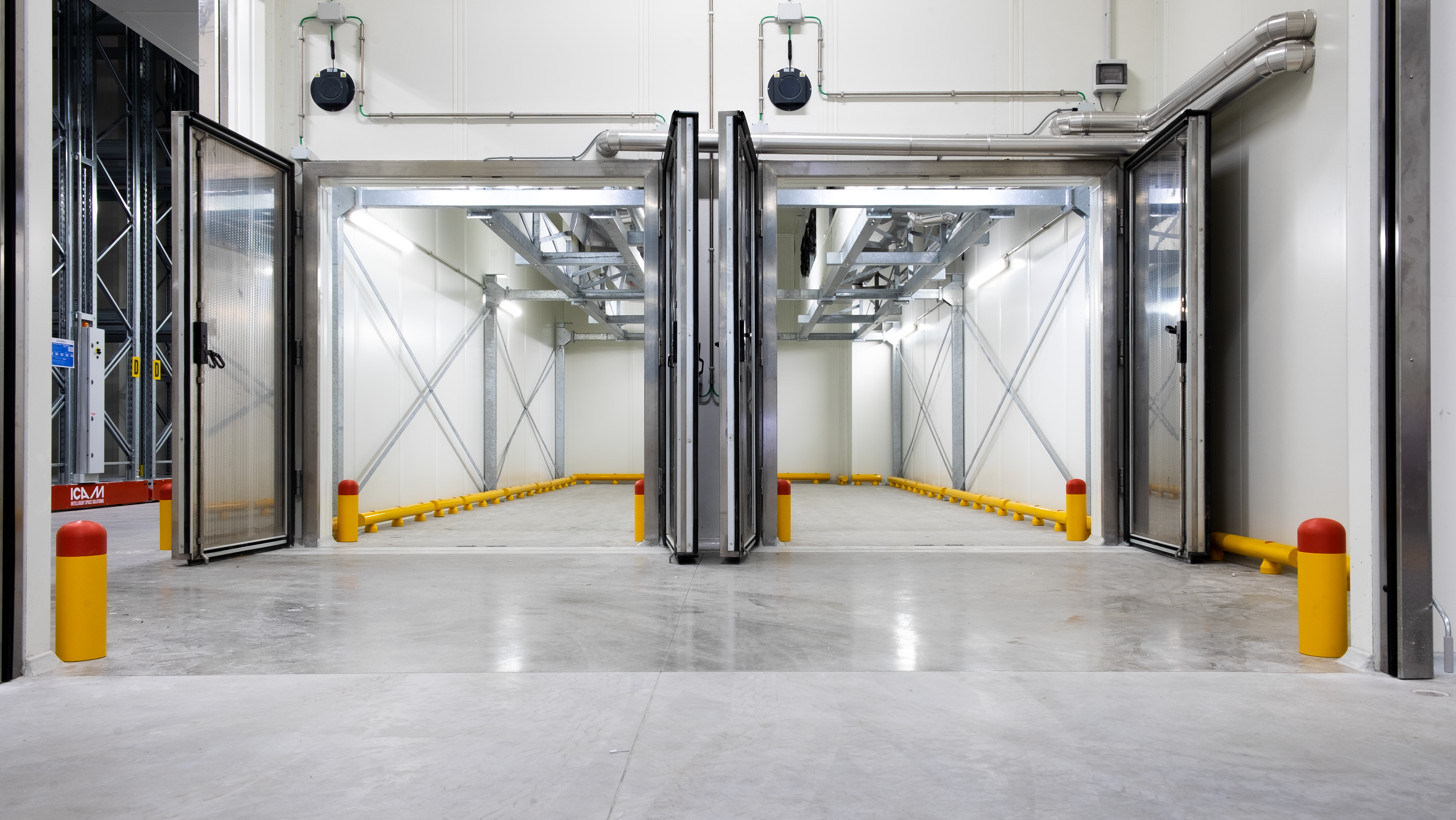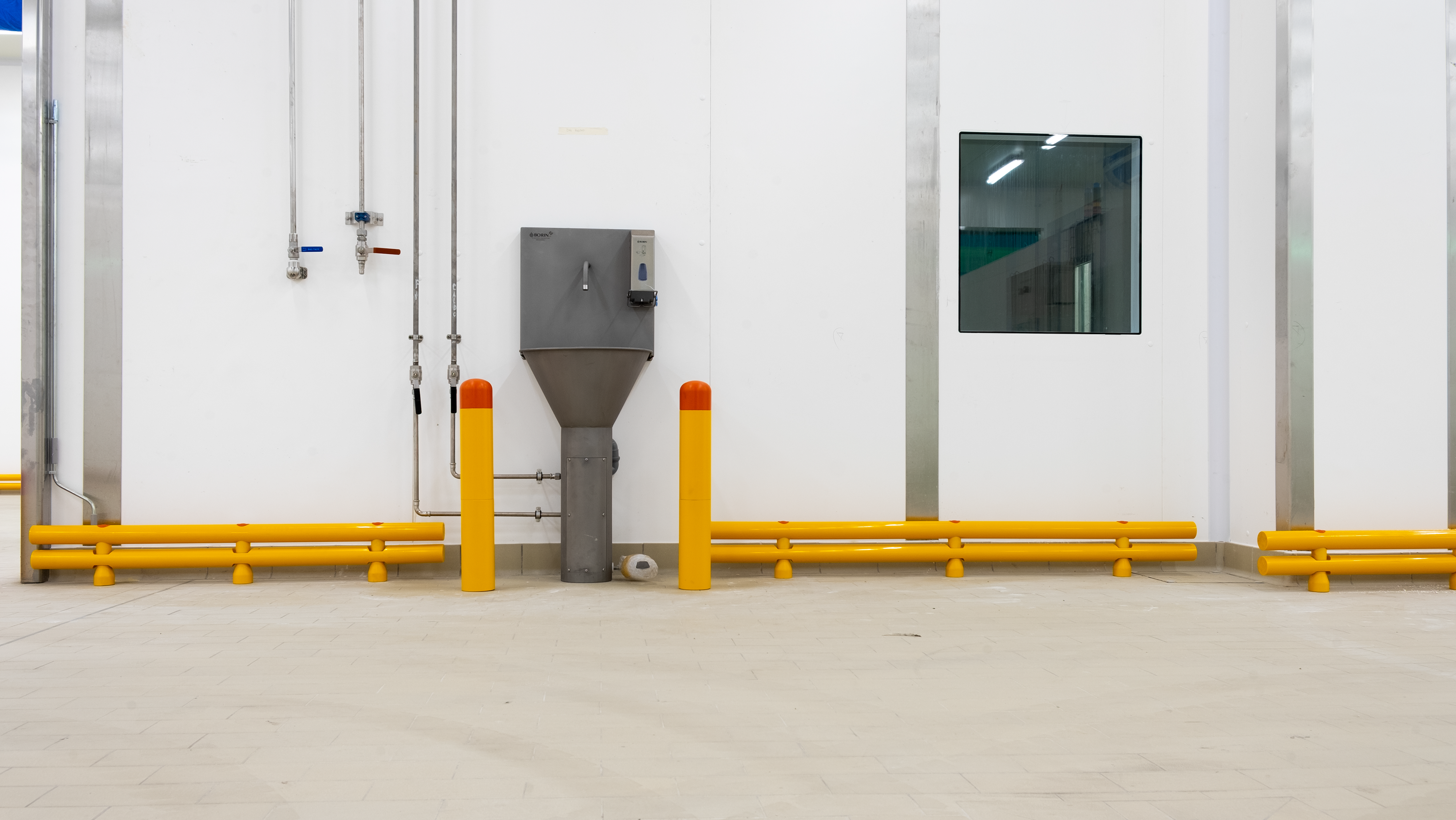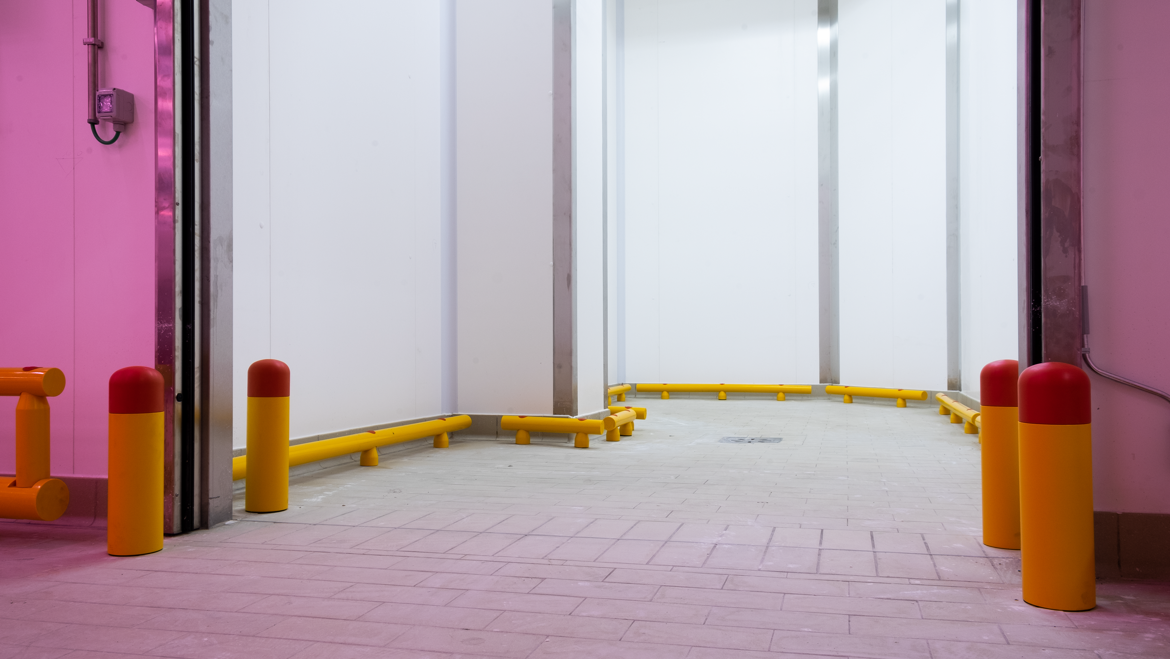 Le colonne e le pareti che circondano i macchinari sono elementi vulnerabili all’interno dello stabilimento Bencarni, poichè carrelli e transpallet possono colpirle danneggiandole vistosamente. Abbiamo protetto quest’area con i nostri Guardrail Antiurto, progettati e certificati per arrestare la corsa di un veicolo e trasferire l’energia d’impatto sprigionata al pavimento, senza che questo venga danneggiato.