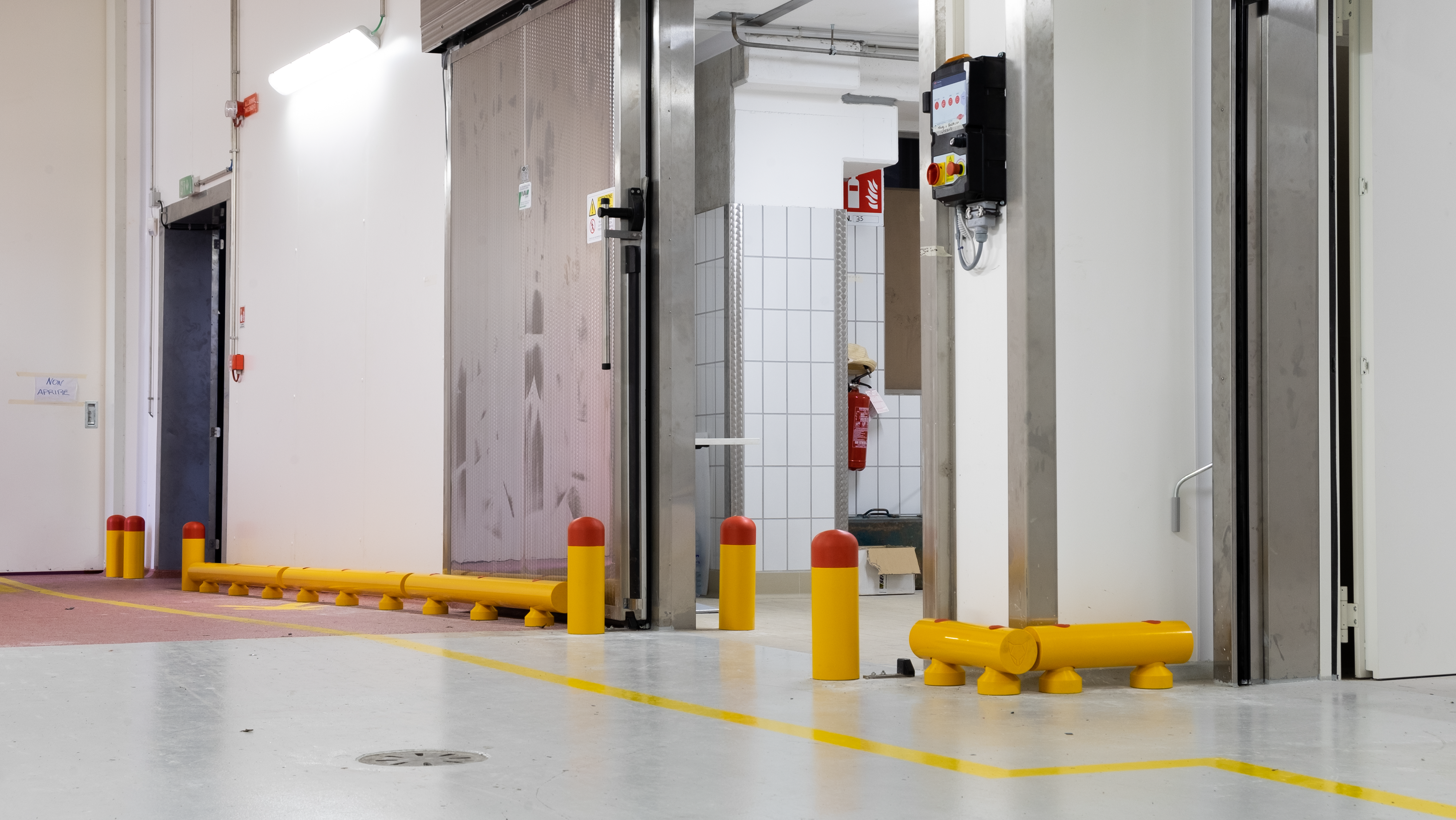 Le PORTE sono uno dei punti più critici di ogni stabilimento poiché ogni singolo passaggio del carrello può generare rischi di danneggiamento importanti. Affinché rimangano intatte, è necessario prima di tutto proteggerne gli stipiti che sono il punto più vulnerabile essendo i primi ad essere colpiti. Abbiamo realizzato un progetto dedicato mettendole in sicurezza tramite l’installazione di Pali Antiurto. Nella scelta della protezione più idonea sono stati tenuti in conto il traffico e la velocità dei mezzi in movimento intorno alle porte e nelle zone limitrofe.
