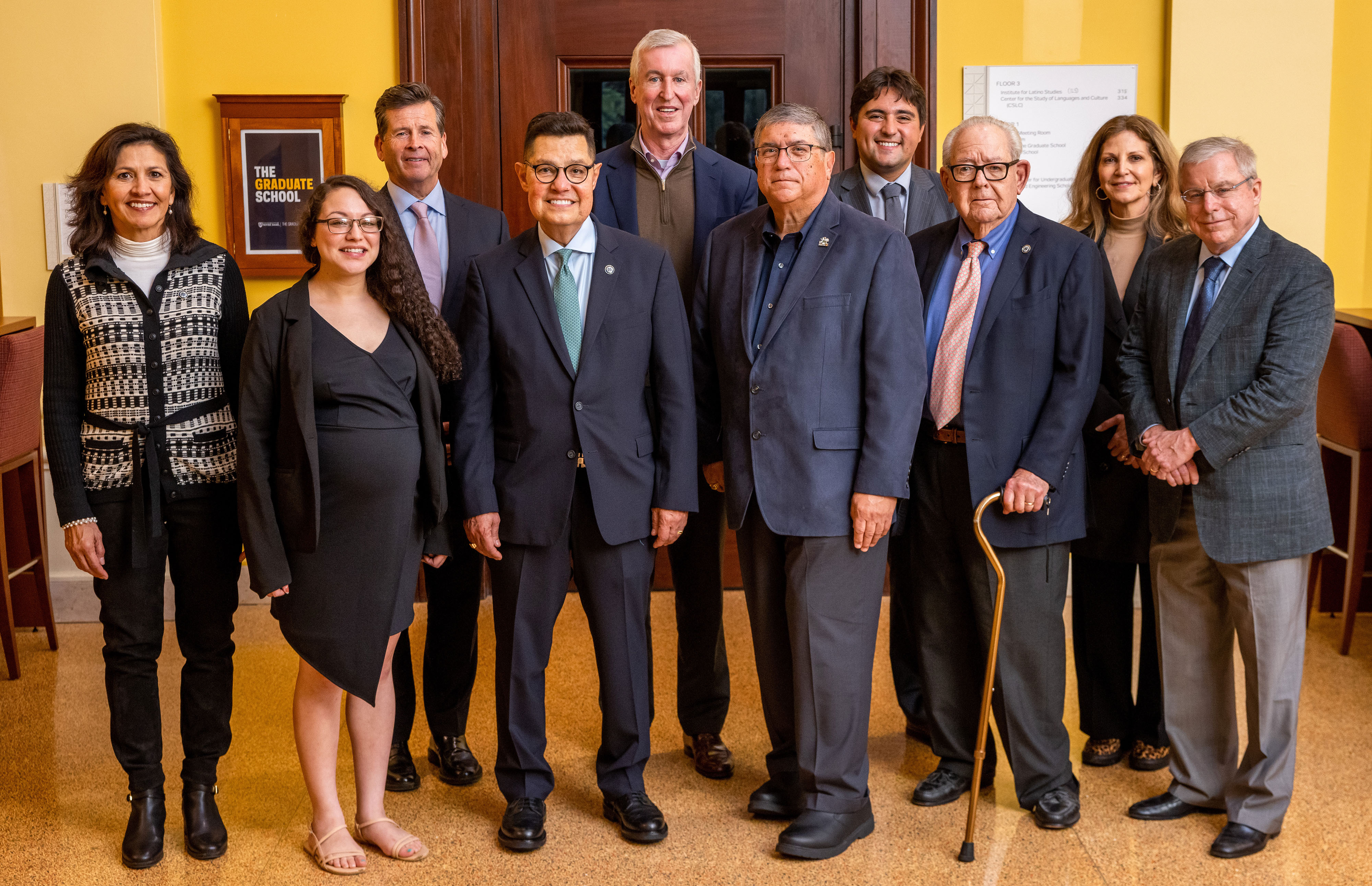 From Left: Irma Tuder ’84, retired owner, Tuder Investments, LLC, Madison, Alabama; Jessica Pedroza ’17, educator, Horizon Science Academy Southwest Chicago, Chicago, Illinois; Greg Hinojosa Evans ’89 (Law), McGuire Woods, LLP, Los Angeles, California; Luis R. Fraga, ILS director; Phil Eagan ’70, Viking Global Investors, L.P., New York City, New York; Philip Fuentes, owner and operator, McDonald’s, CHBIP Management, Inc., and chair of the ILS Advisory Council; Peter S. Gonzales ’16, JD ’19, associate, Hinshaw & Culbertson LLP, Chicago, Illinois; Ignacio Lozano, Jr. ’47, retired publisher, of La Opinión, Newport Beach, California, and Board of Trustees emeritus; Lupe Eichelberger ’82, co-founder, Snoozeenie, LLC, Atlanta, Georgia; and Joe A. Power ’74, president, founding partner, and attorney at Power, Rogers & Smith, Chicago, Illinois.