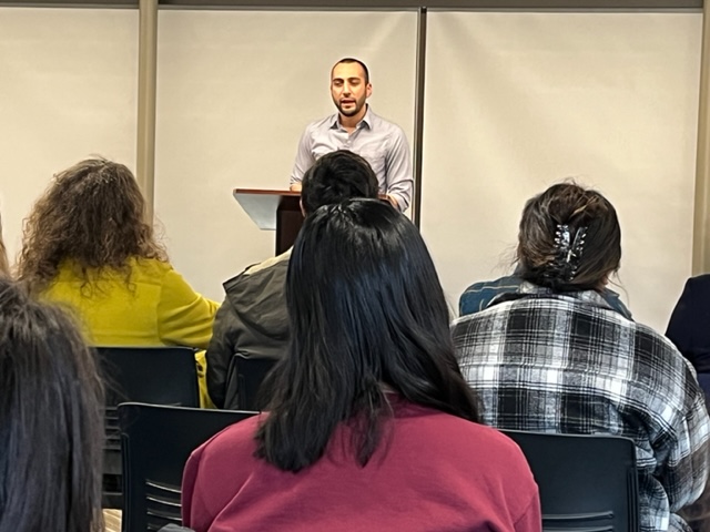 Poet and editor Jacob Saenz gave a reading in April 2022, which was co-presented with the Creative Writing Program.