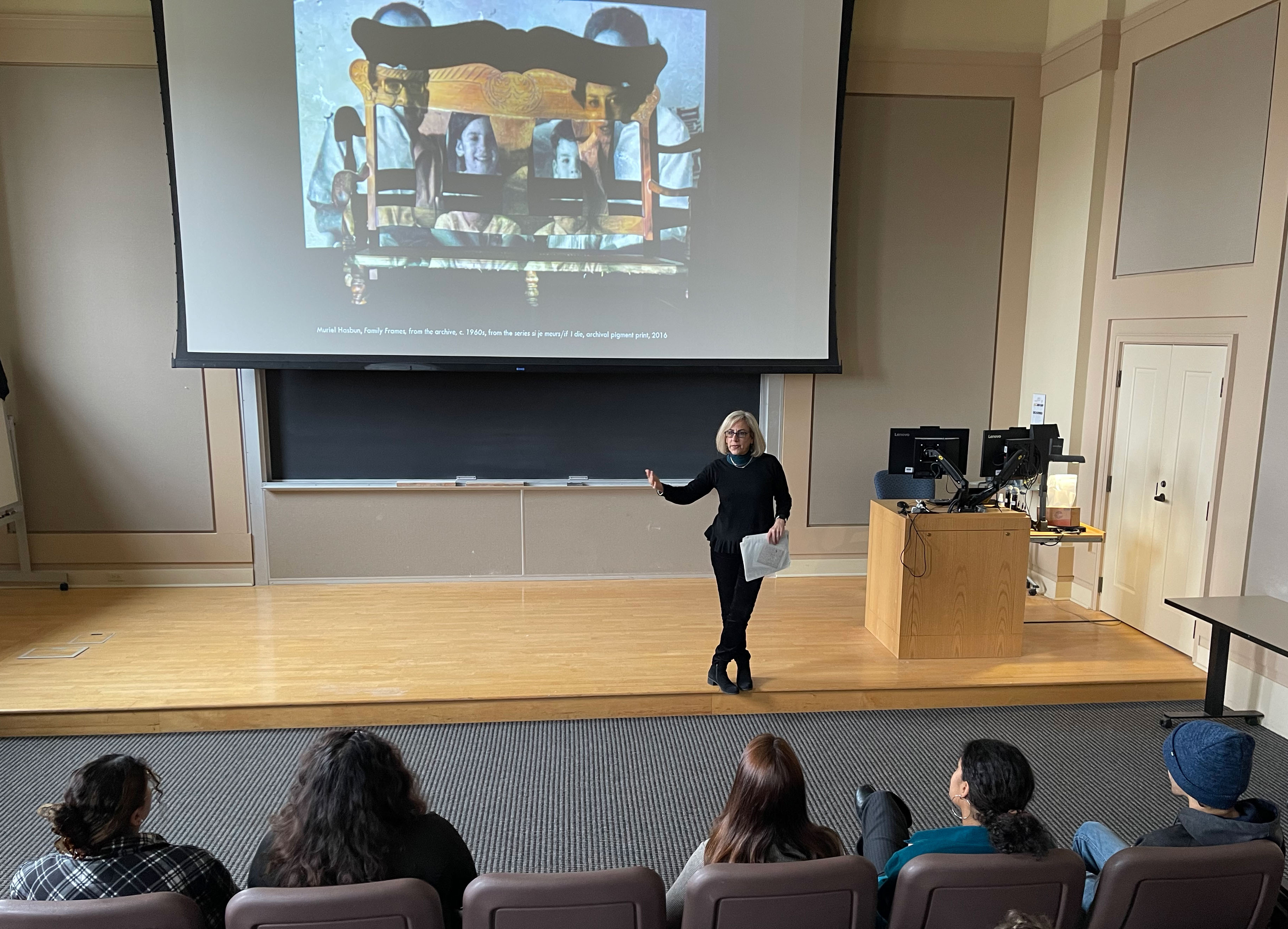 Renowned artist and educator Muriel Hasbun delivered a lecture in March 2022 titled “With Pulsing Desire: Memory, Representation and Inclusion through Art.” She also conducted a "Community Blackboard" workshop with students in art, literature, and Latino studies to examine their heritage and stories.