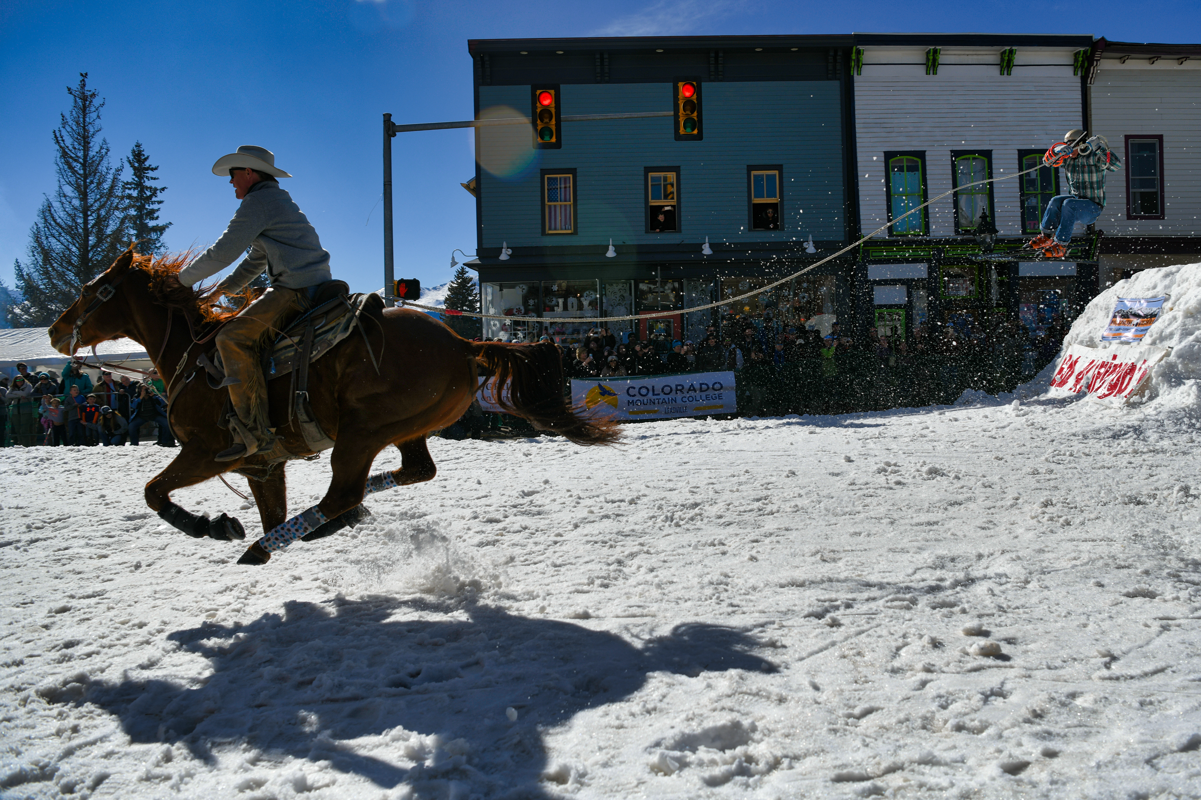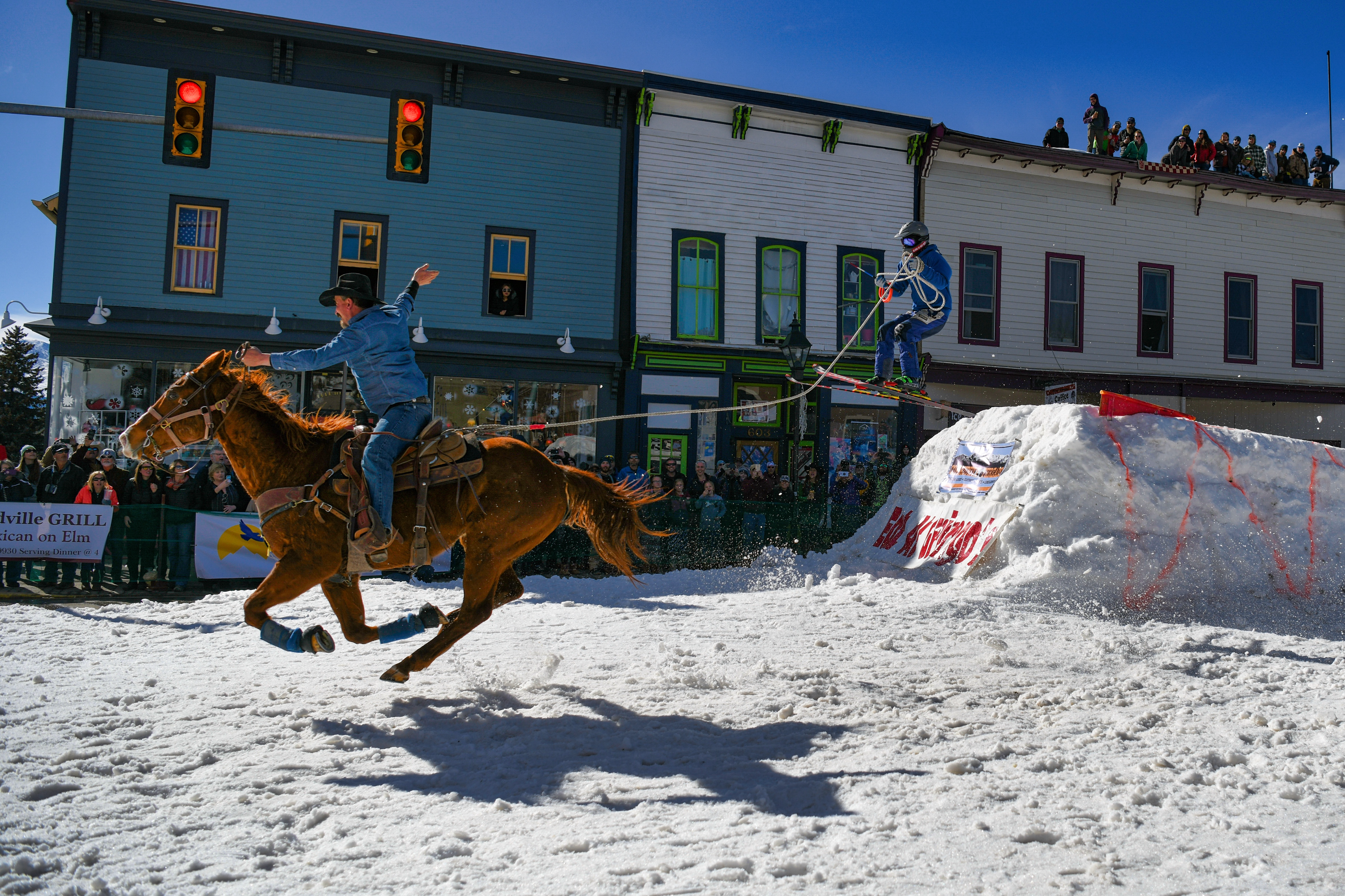 Leadville, Colorado has been hosting Skijoring since 1946. The Leadville version is normally spelled as two words: "Ski Joring".