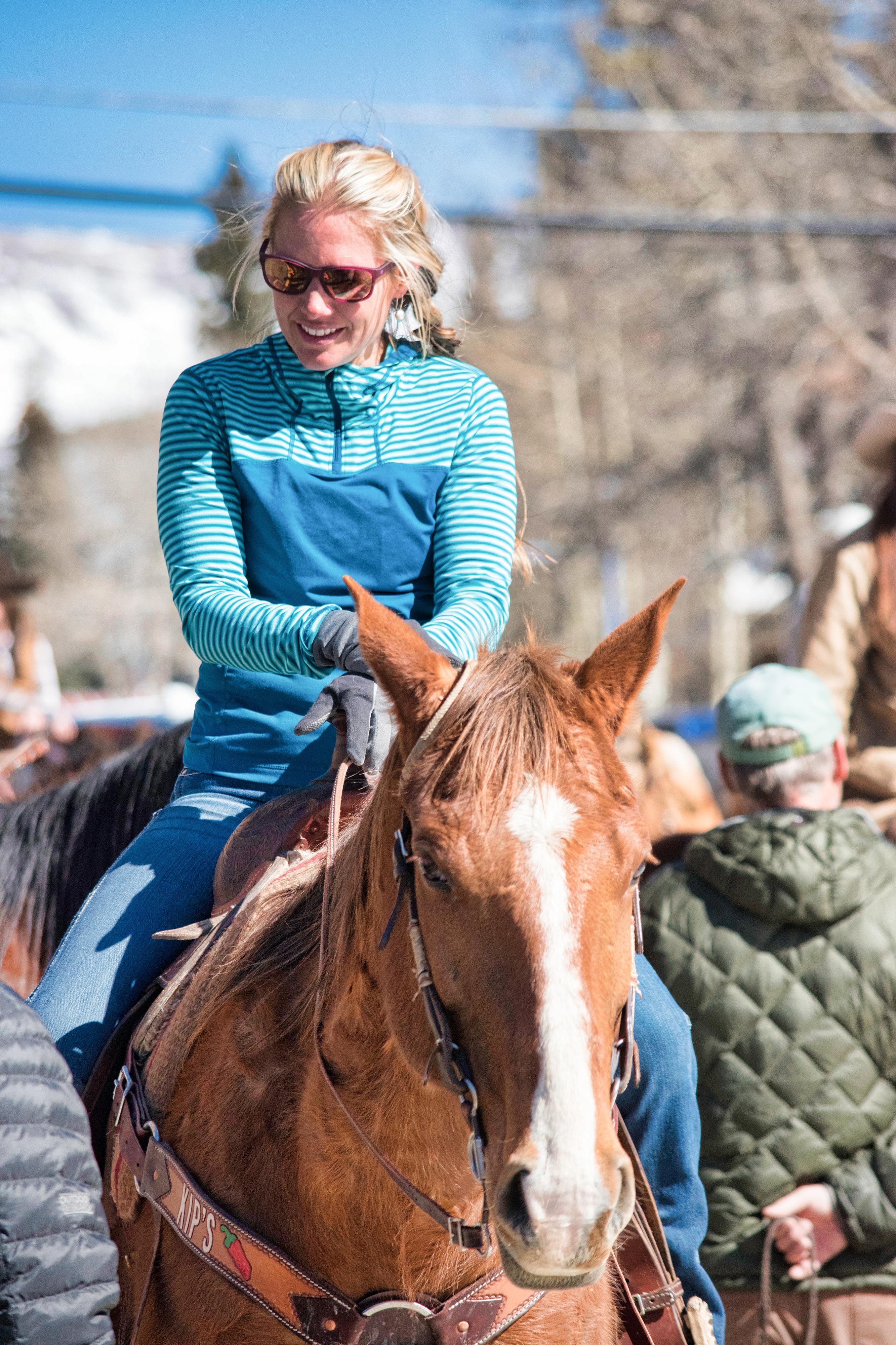 Equestrian skijoring consists of a team or a single horse with the rider pulling the person on skis hanging on to a tow rope similar to someone who is water skiing.
