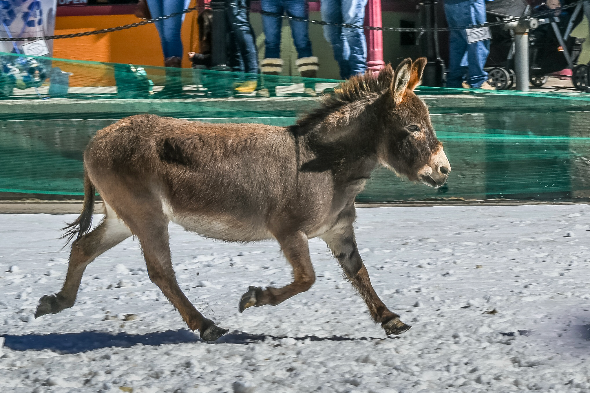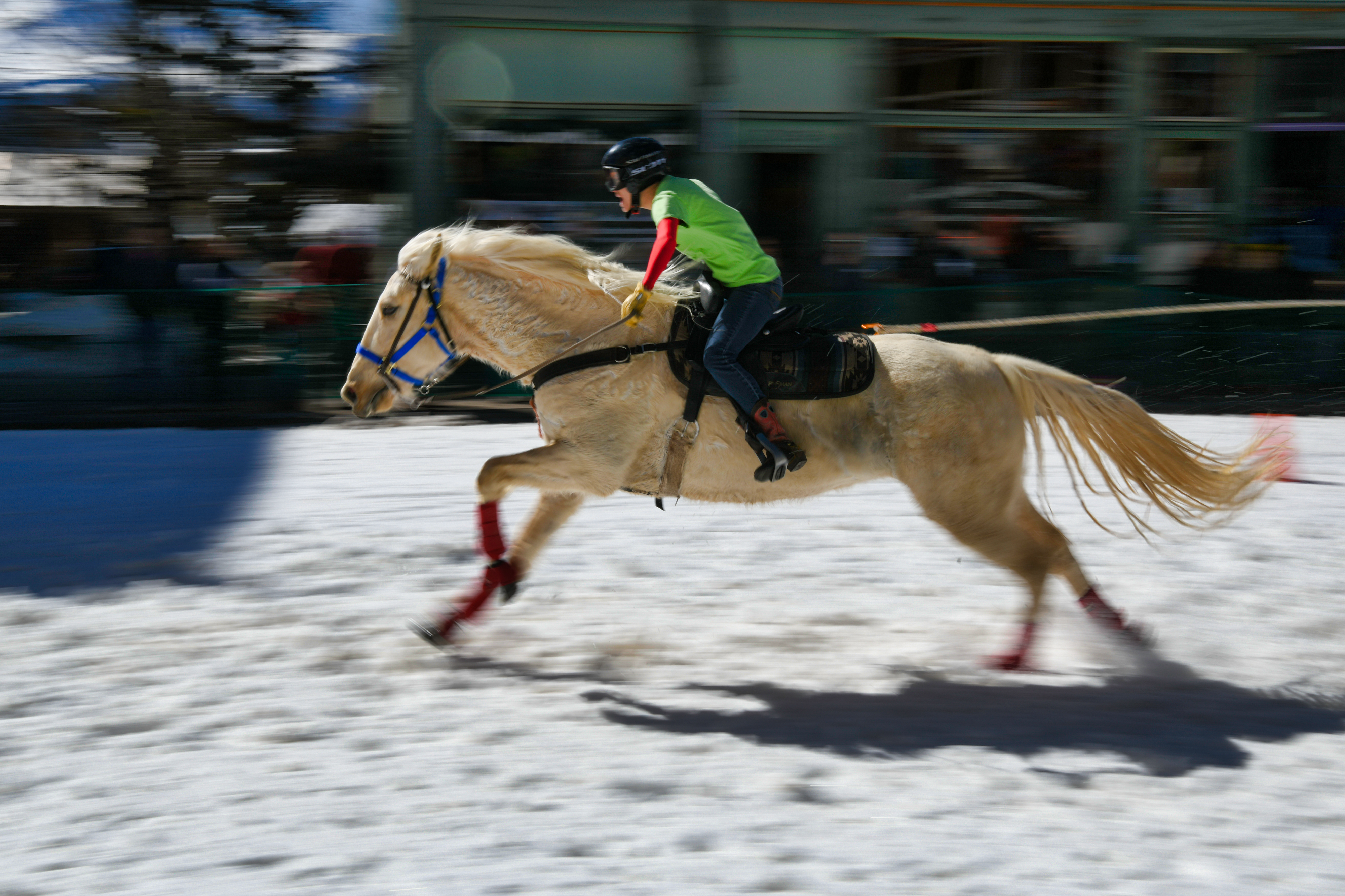 In Skijoring, horses are trained to work with the presence of a dangling rope and a skier right behind it. The slack of the rope determines the distance between the skier and the horse. Horses are trained for such annual occasions in different towns.