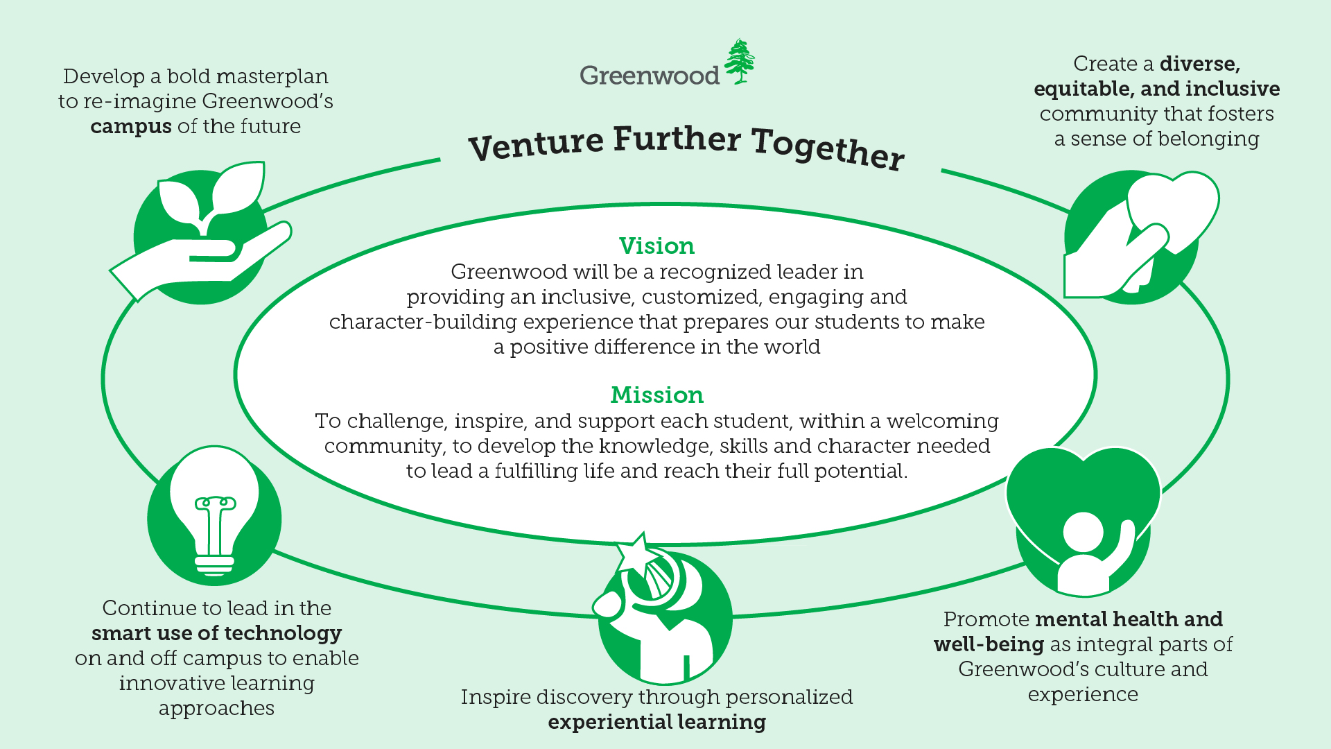 Greenwood will be a recognized leader in providing an inclusive, customized, engaging and character-building experience that prepares our students to make a positive difference in the world.