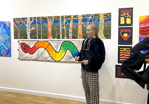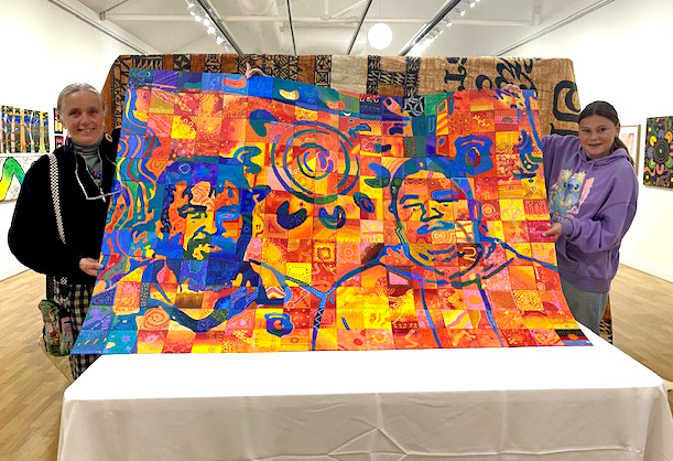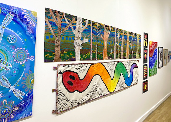 This week's selection is the collaborative artwork coordinated by Mrs Hill and worked on by students in all years. It features father and son, Vinnie and Braithen Winsor. It was created for the NAIDOC Week 2023 exhibition.