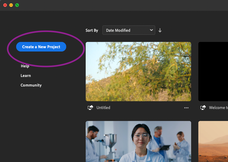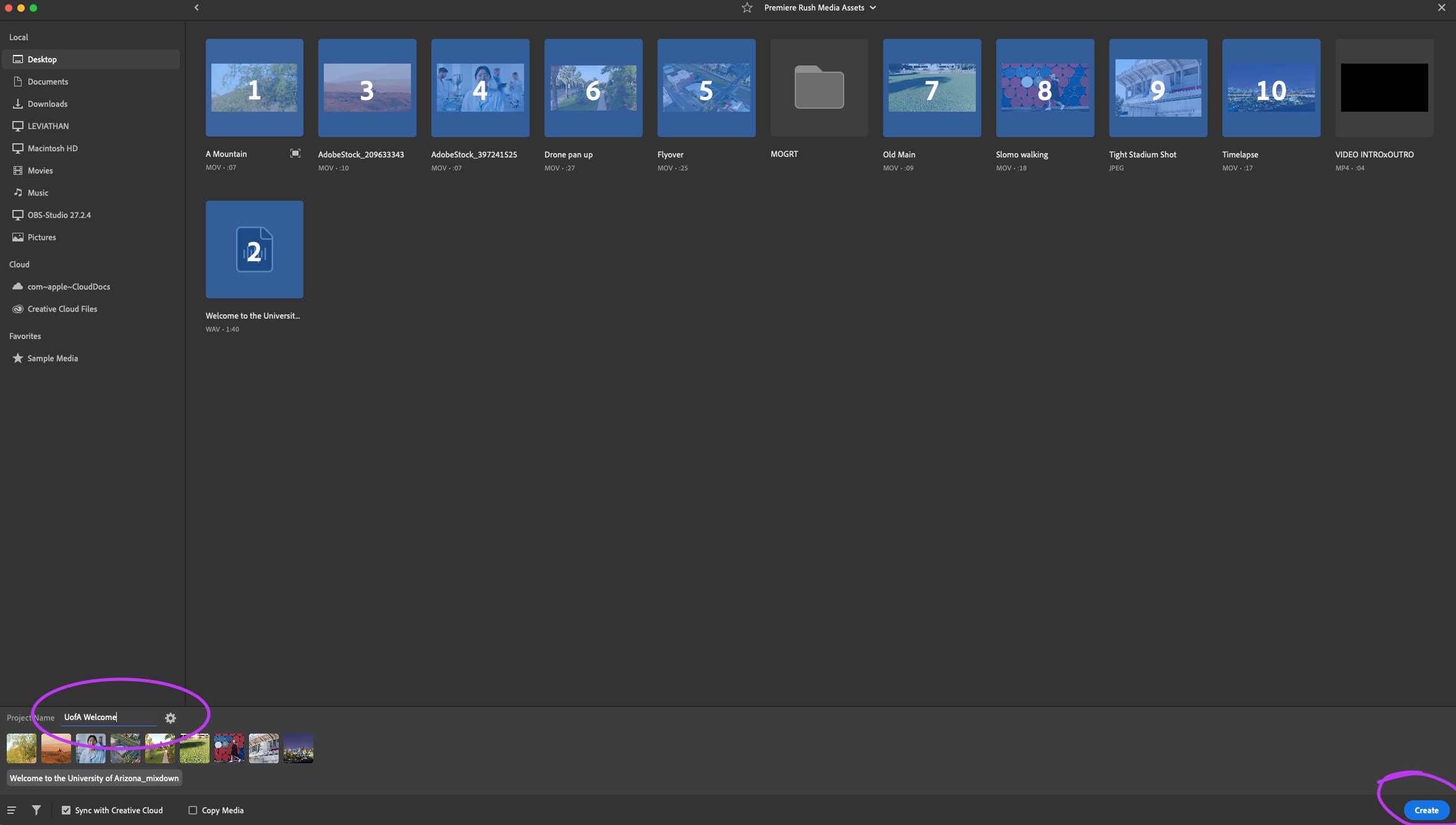 Navigate to the folder you created in Step 1, and select all media assets in the order they appear from left to right. Next, title your project “Sustainability” in the bottom left of your screen. Finally, click “Create.”
