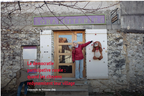 - l’accompagnement : il s’agit du cas le plus fréquent à Volonne. Reposant sur le principe du gagnant-gagnant, la prise d’initiative est encouragée et accompagnée par la municipalité. Ainsi, la commune a, par exemple, accompagné le lancement de la Gratuiterie souhaitée par un collectif de citoyens en mettant à disposition un local et en fournissant du matériel.